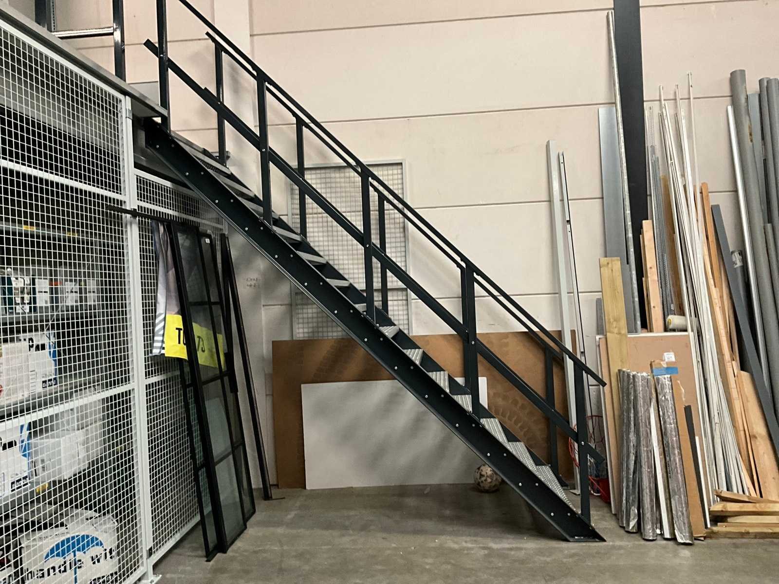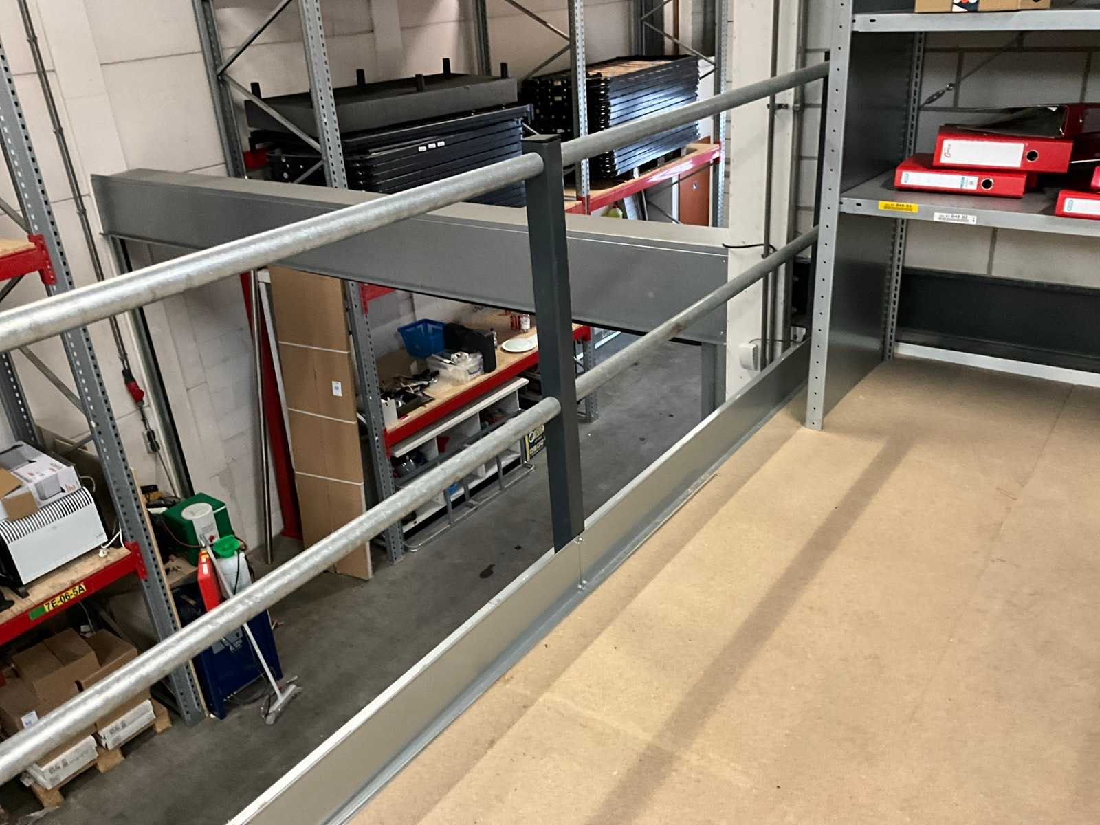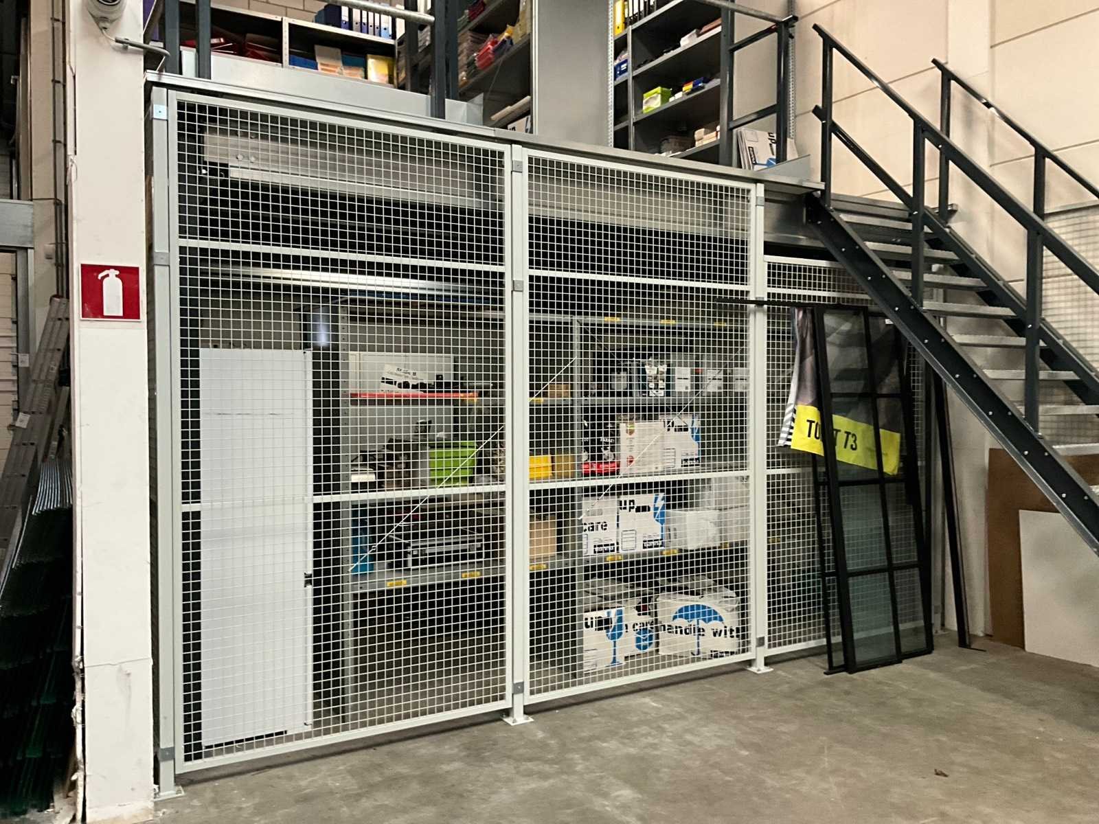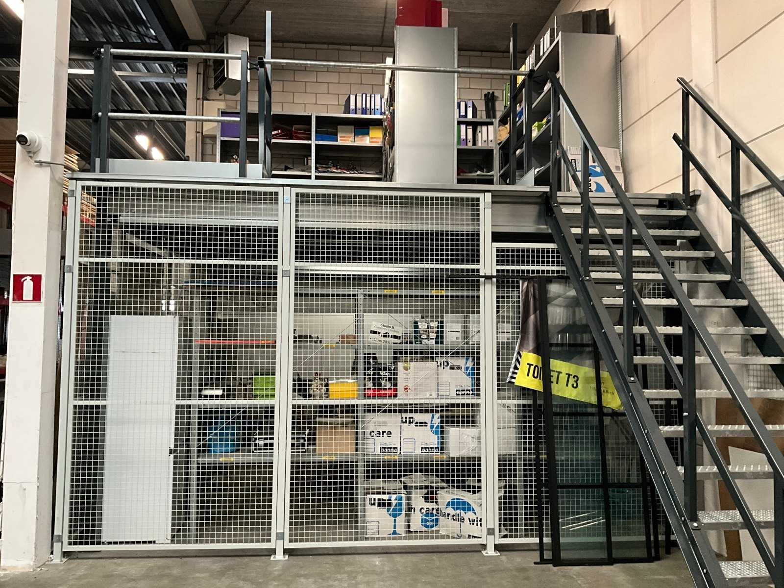 Voorzien van hekwerk met deur. Inclusief stellingen op de verdieping. Inhoud niet inbegrepen. Let op! In verband met logistieke beperking kan dit kavel uitsluitend worden gedemonteerd en afgehaald op 13 maart 2026. Totale afmeting L: 4720mm Totale afmeting Breedte: 4720mm Totale afmeting Hoogte: 3820mm Vloerhoogte: 2800mm Houten vloer: true Met trap: true
