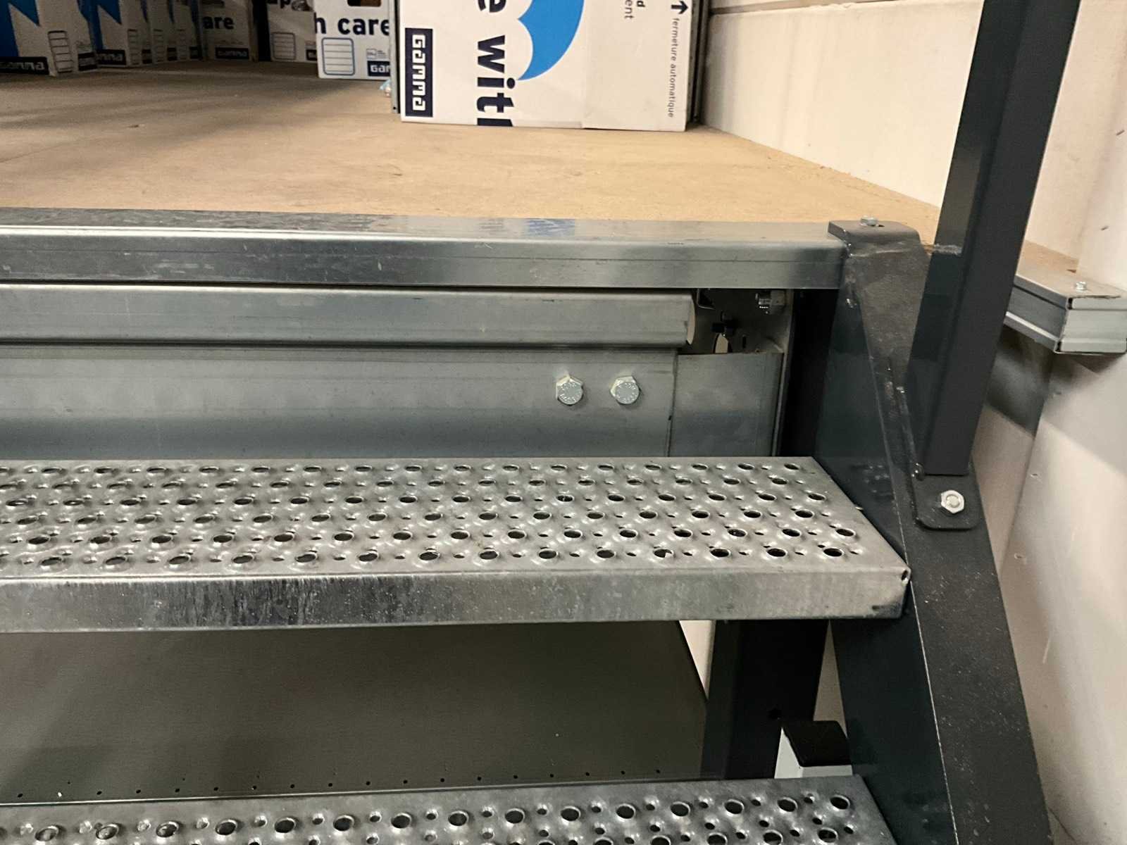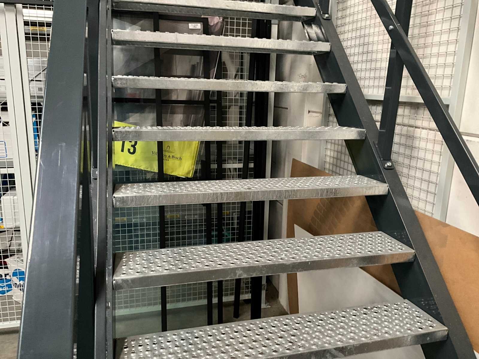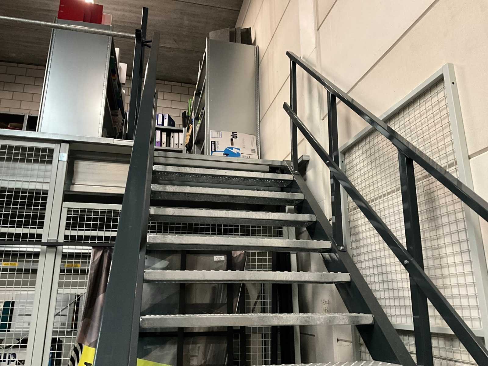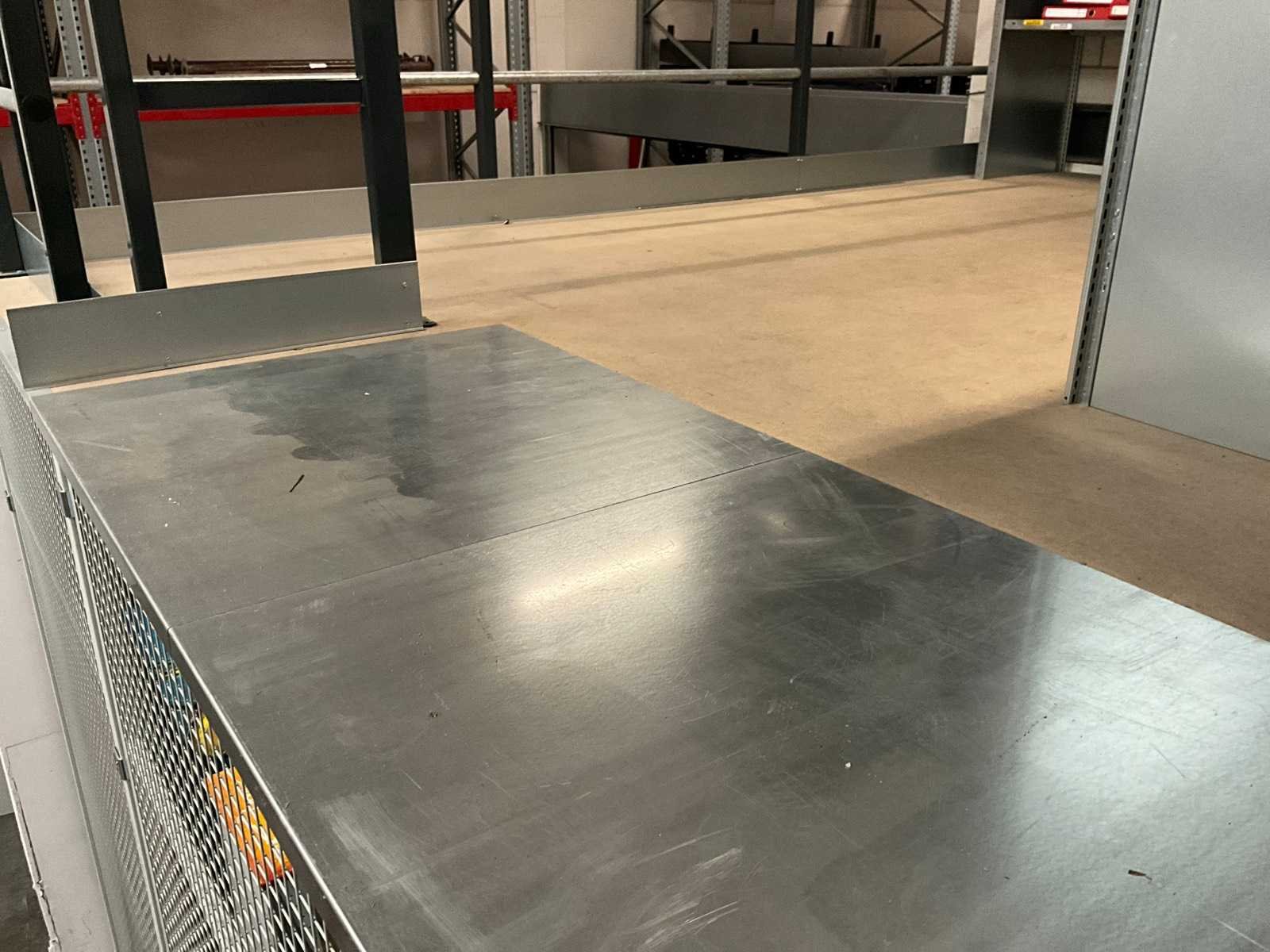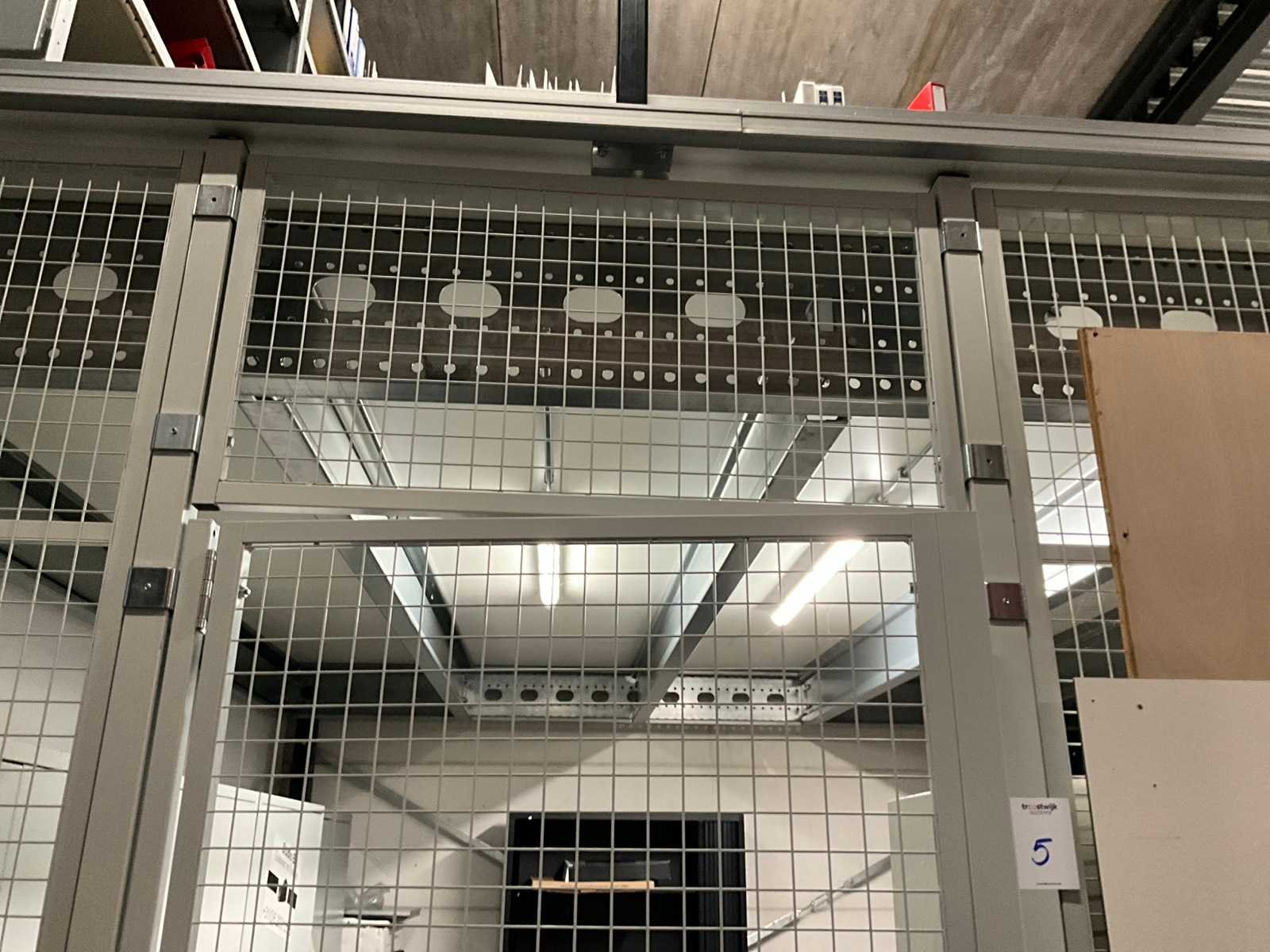 Voorzien van hekwerk met deur. Inclusief stellingen op de verdieping. Inhoud niet inbegrepen. Let op! In verband met logistieke beperking kan dit kavel uitsluitend worden gedemonteerd en afgehaald op 13 maart 2026. Totale afmeting L: 4720mm Totale afmeting Breedte: 4720mm Totale afmeting Hoogte: 3820mm Vloerhoogte: 2800mm Houten vloer: true Met trap: true