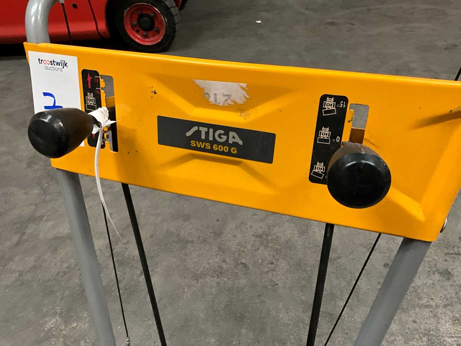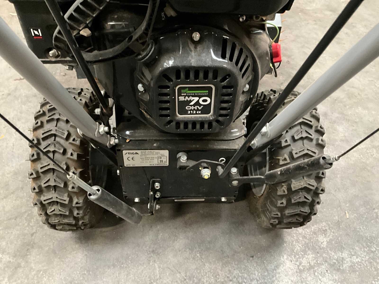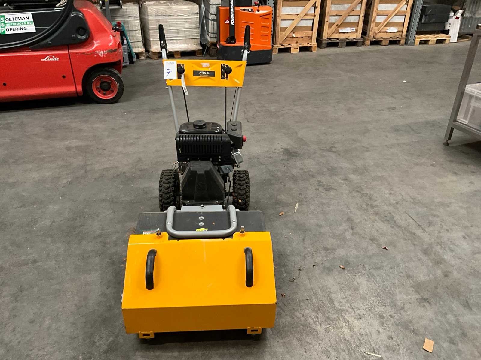 Voorzien van 212 cc benzine motor Merk: Stiga Type: SWS 600 G Werkbreedte: 699mm Totale afmeting L: 1500mm Totale afmeting Breedte: 610mm Totale afmeting Hoogte: 1080mm