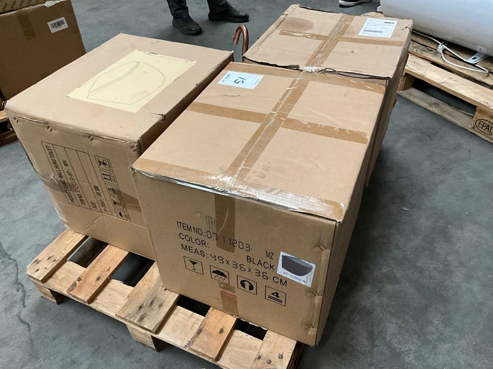 Bestaande uit 2x witte en 1x zwarte toiletpot. Inclusief wastafel met kraan