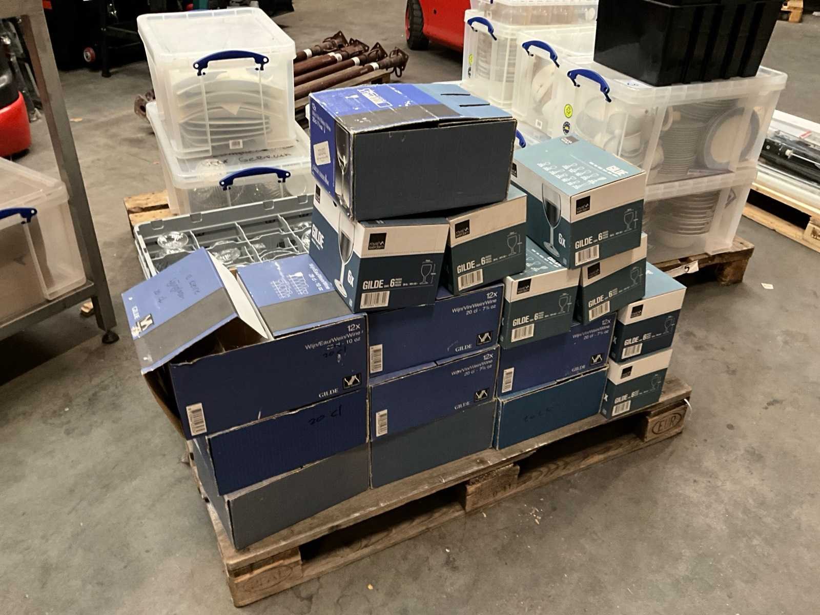 Waaronder wijnglazen, ijscoupes. Op 1 pallet