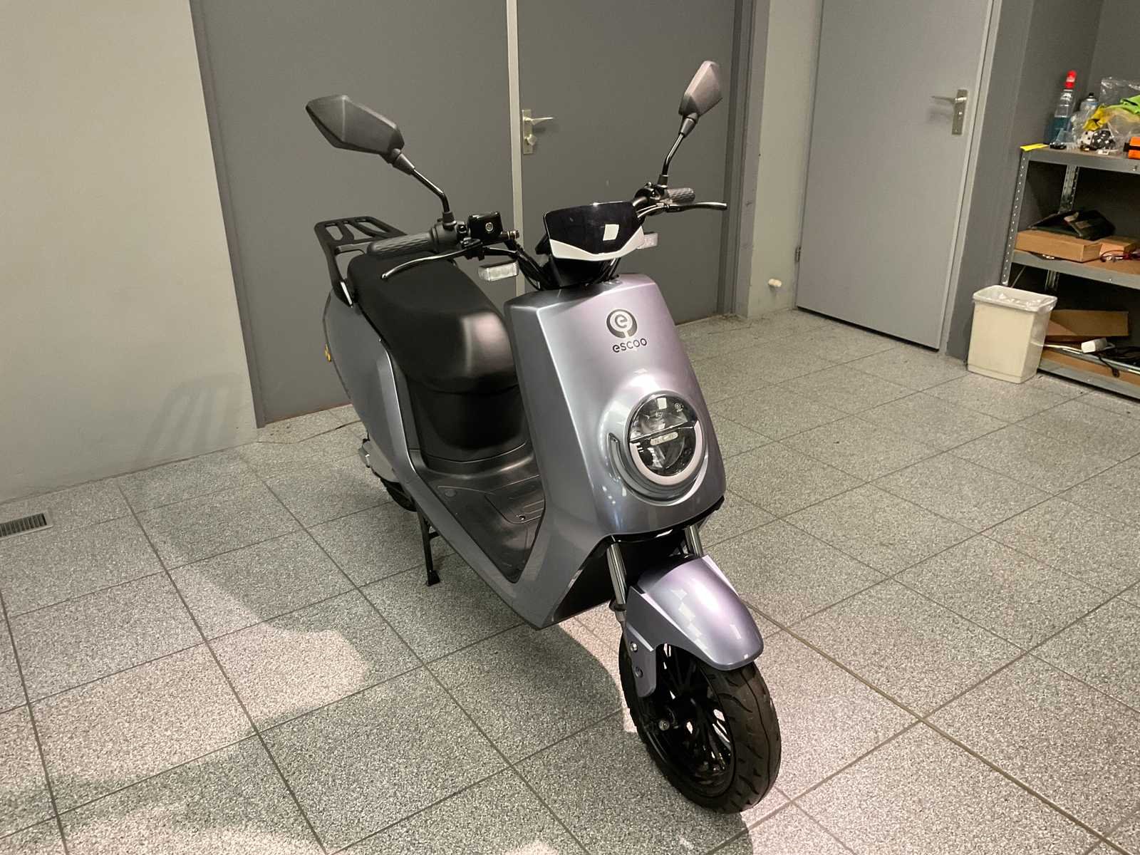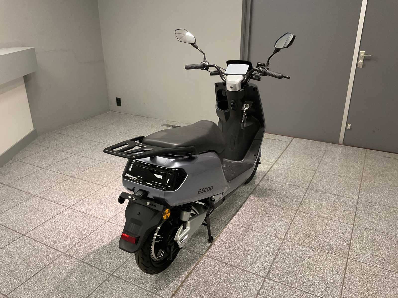 Geen kenteken, CVO/COC papieren erbij, zwart zadel, inclusief 1 accu, lader, 2x sleutel, keyless go, alarm, achteruitrij-functie, electromotor 2000 W, USB lader, opbergkoffer. Merk: Escoo Type: Ronda Kleur: Grijs Bouwjaar: 2022 Serienummer: LW5NWH309N1000040 Snelheid: 45km/h