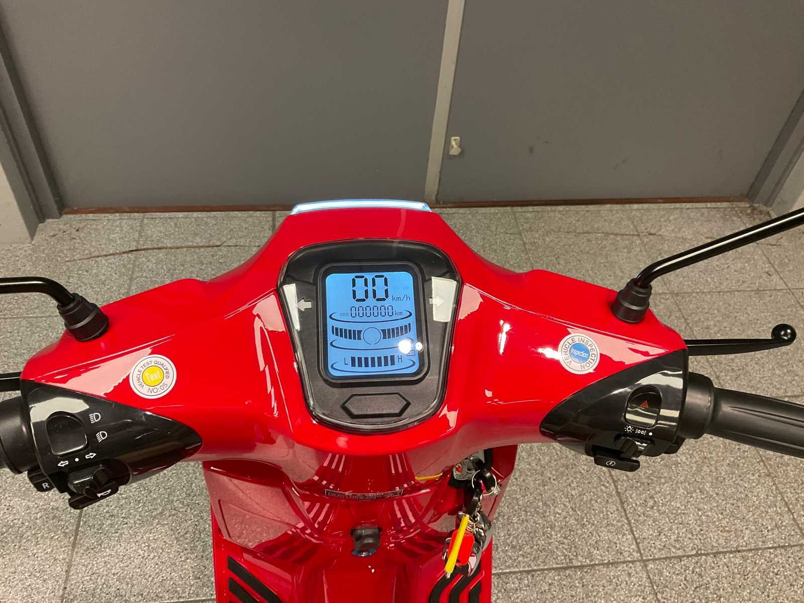 Geen kenteken, CVO/COC papieren erbij, beige zadel, inclusief 1 accu, snellader, 2x sleutel, keyless go, alarm, achteruitrijfunctie, Bosch electromotor 2000 W, USB lader, opbergkoffer. Merk: Escoo Type: Bayesa Kleur: Rood Bouwjaar: 2022 Serienummer: LM0CGC133N1N00263 Snelheid: 25km/h