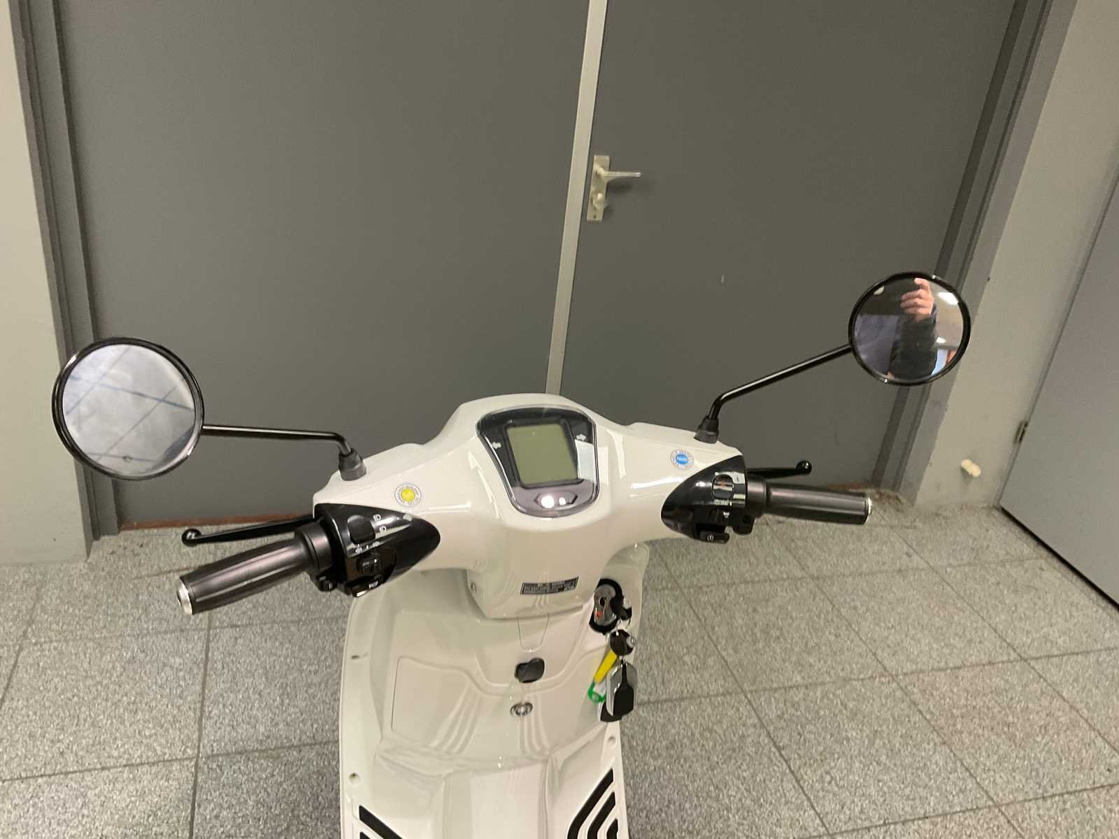 Geen kenteken, CVO/COC papieren erbij, beige zadel, inclusief 1 accu, snellader, 2x sleutel, keyless go, alarm, achteruitrijfunctie, Bosch electromotor 2000 W, USB lader, opbergkoffer. Merk: Escoo Type: Bayesa Kleur: Wit Bouwjaar: 2022 Serienummer: LM0CGC13XN1N00275 Snelheid: 25km/h