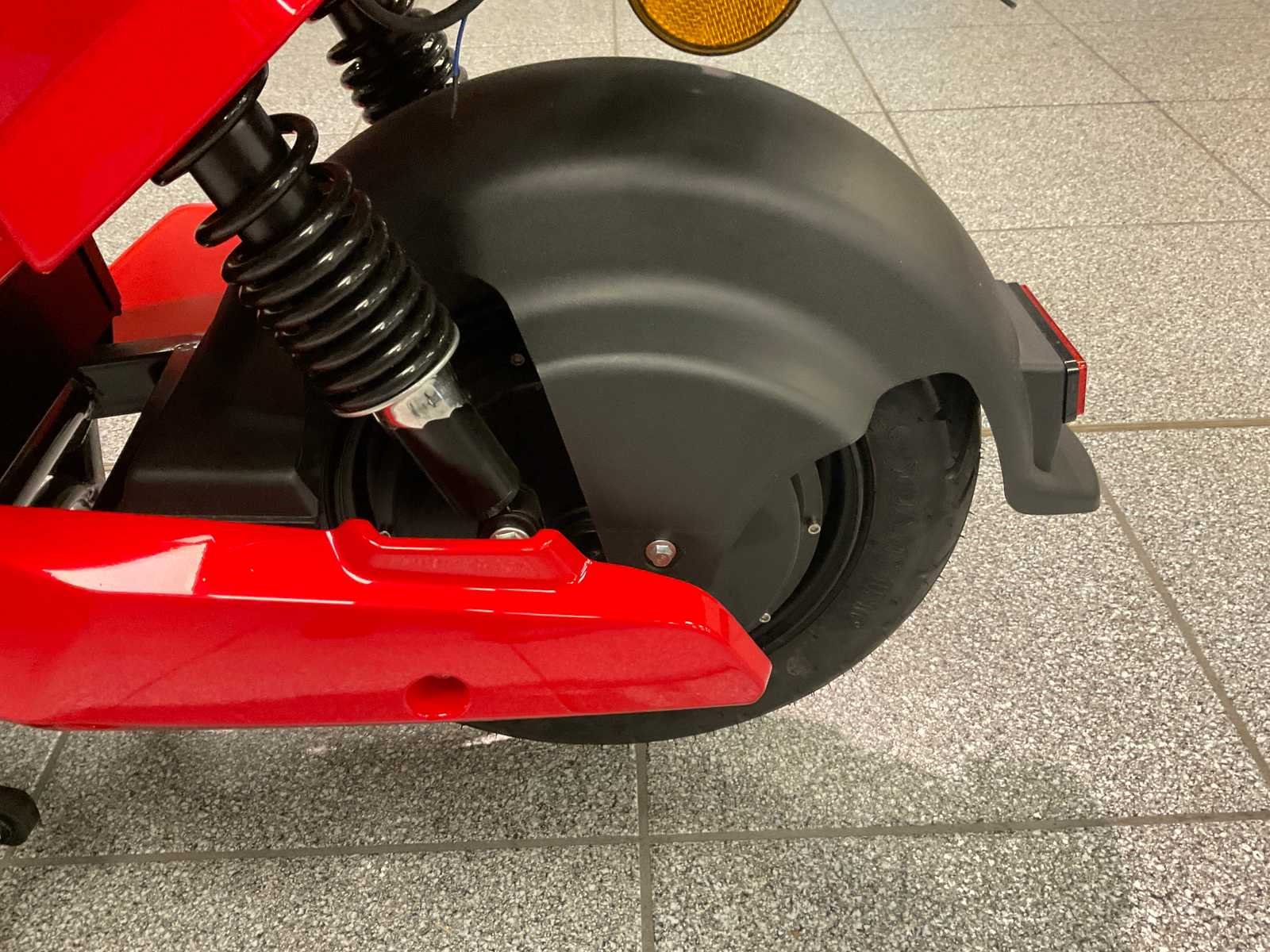 Geen kenteken, CVO/COC papieren erbij, zwart zadel, inclusief 1 accu, lader, 2x sleutel, keyless go, alarm, achteruitrij-functie, electromotor 1200 W, USB lader, opbergkoffer. Merk: Escoo Type: Cida Kleur: Rood Bouwjaar: 2022 Serienummer: LJ7DT5BZ1N801013 Snelheid: 45km/h