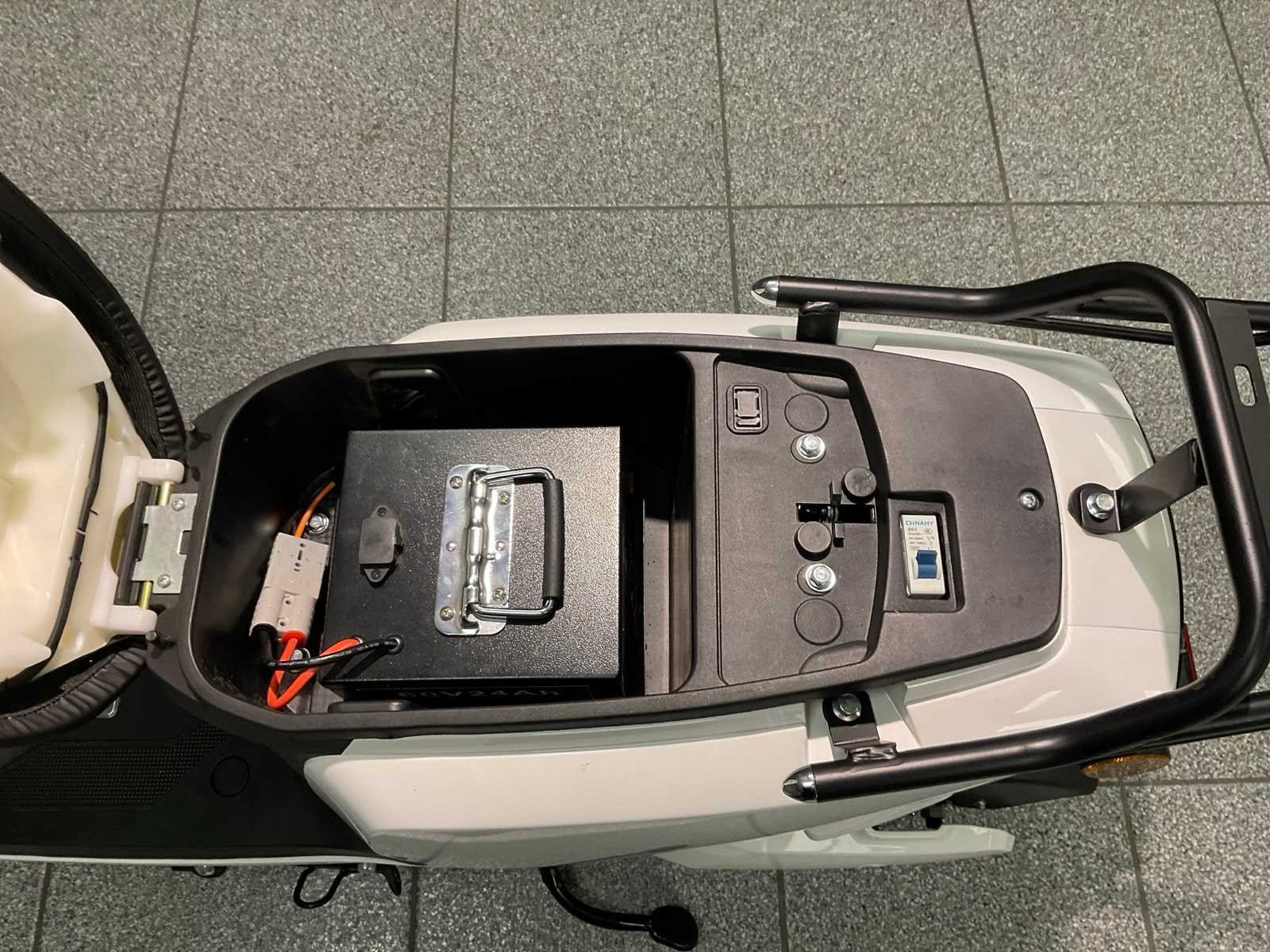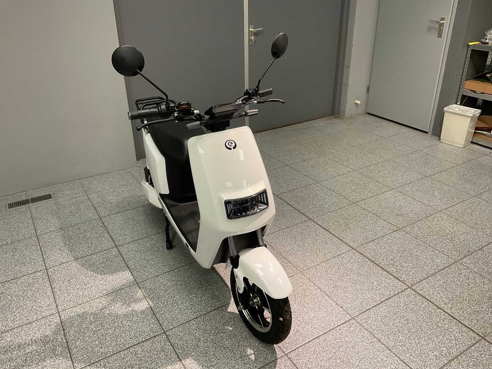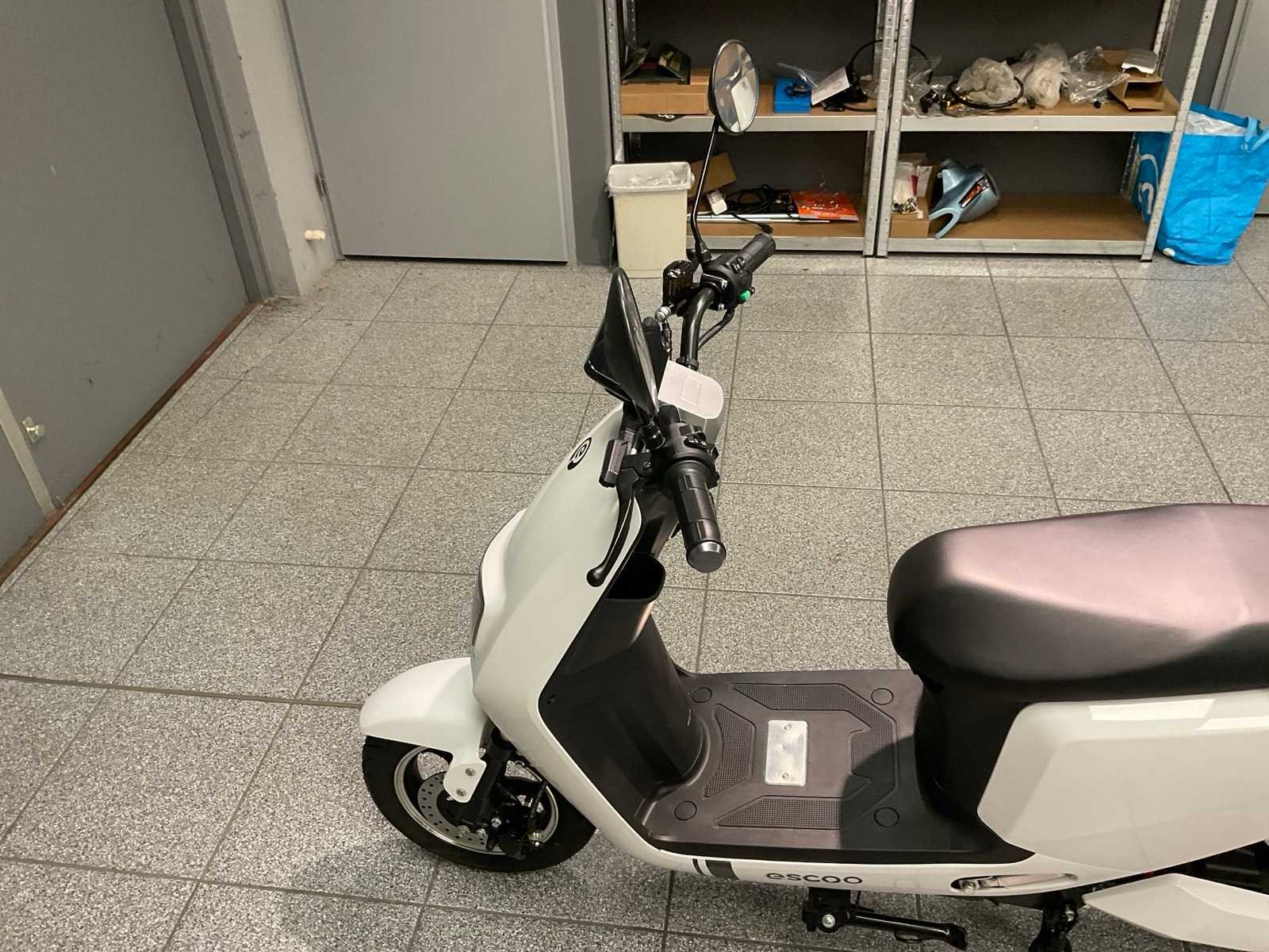 Geen kenteken, CVO/COC papieren erbij, zwart zadel, inclusief 1 accu, lader, 2x sleutel, keyless go, alarm, achteruitrij-functie, electromotor 1200 W, USB lader, opbergkoffer. Merk: Escoo Type: Cida Kleur: Wit Bouwjaar: 2022 Serienummer: LJ7DT5BZ0NC801004 Snelheid: 45km/h