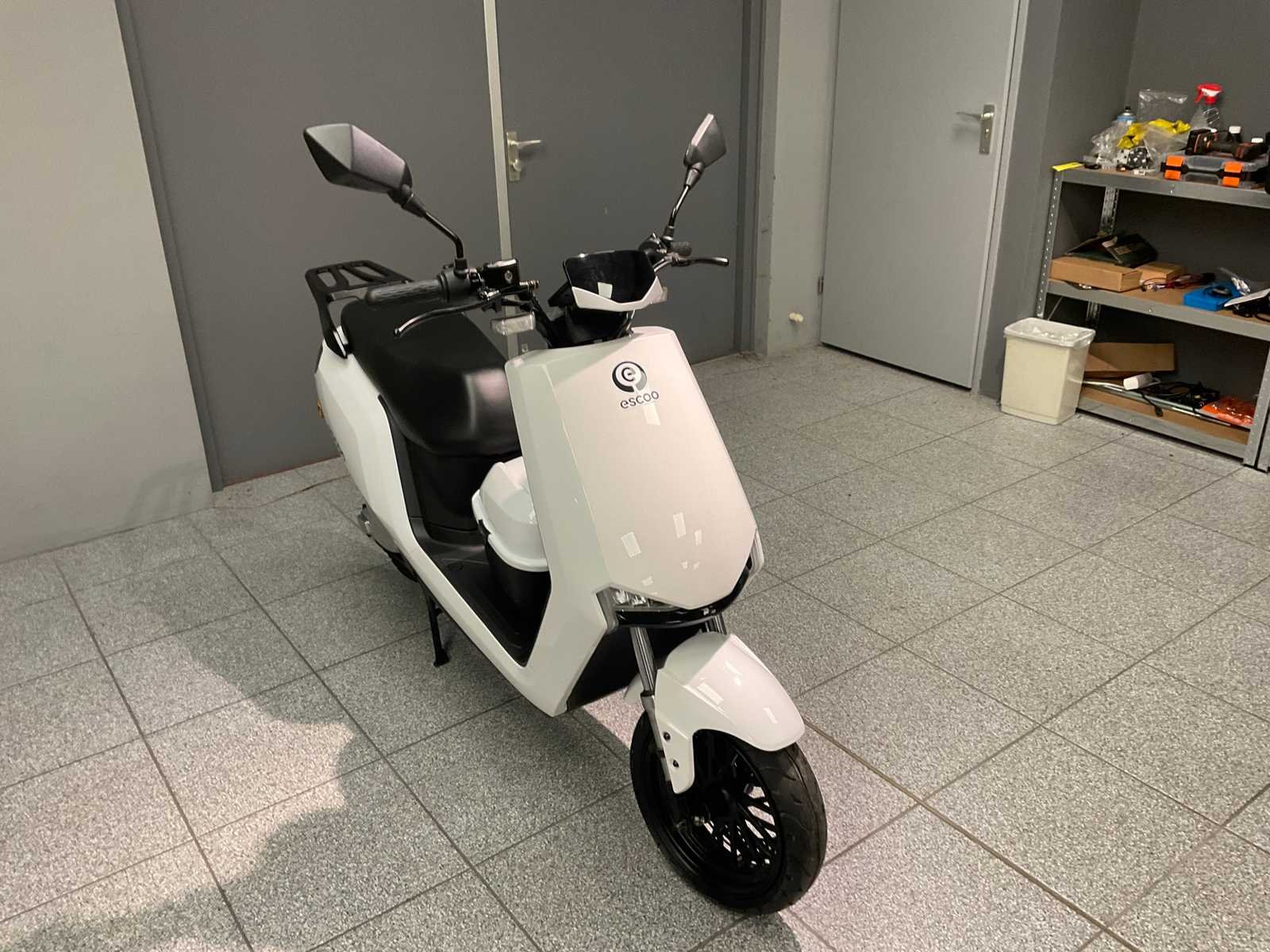 Geen kenteken, CVO/COC papieren erbij, zwart zadel, inclusief 1 accu, lader, 2x sleutel, keyless go, alarm, achteruitrij-functie, electromotor 2000 W, USB lader, opbergkoffer. Merk: Escoo Type: Torcido Kleur: Wit Bouwjaar: 2022 Serienummer: LW5NWH30XN1000015 Snelheid: 45km/h