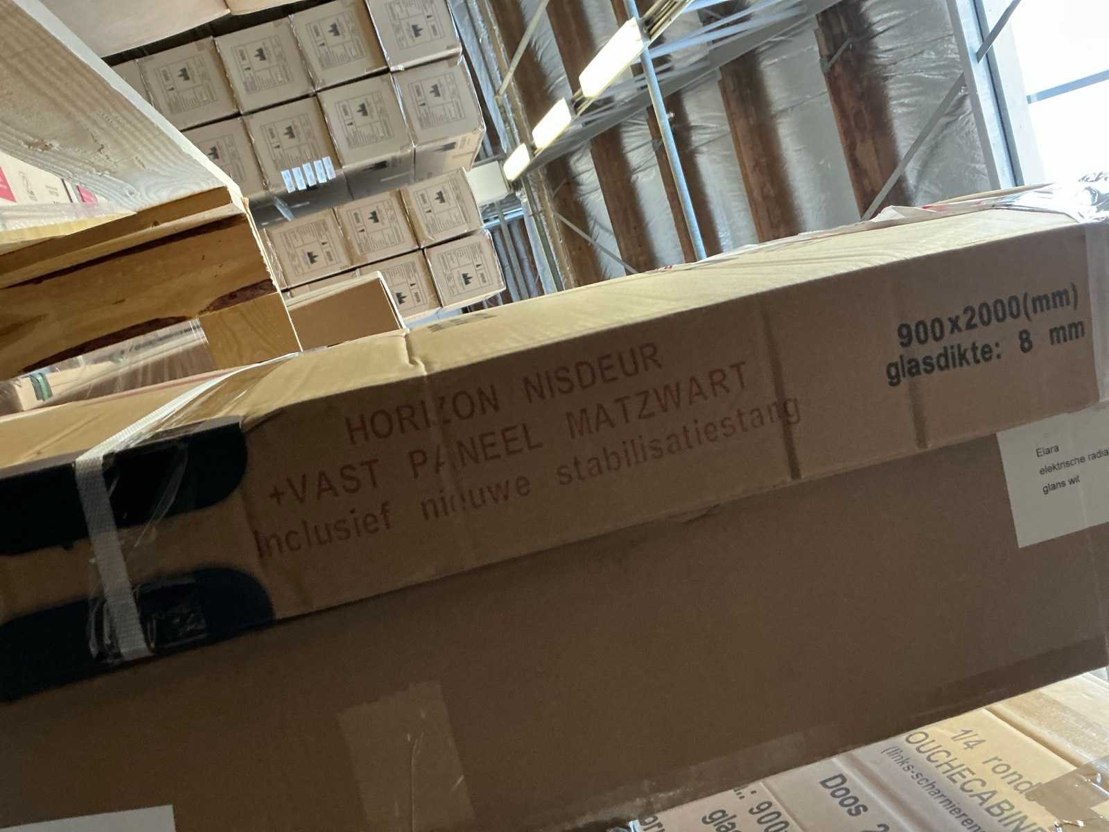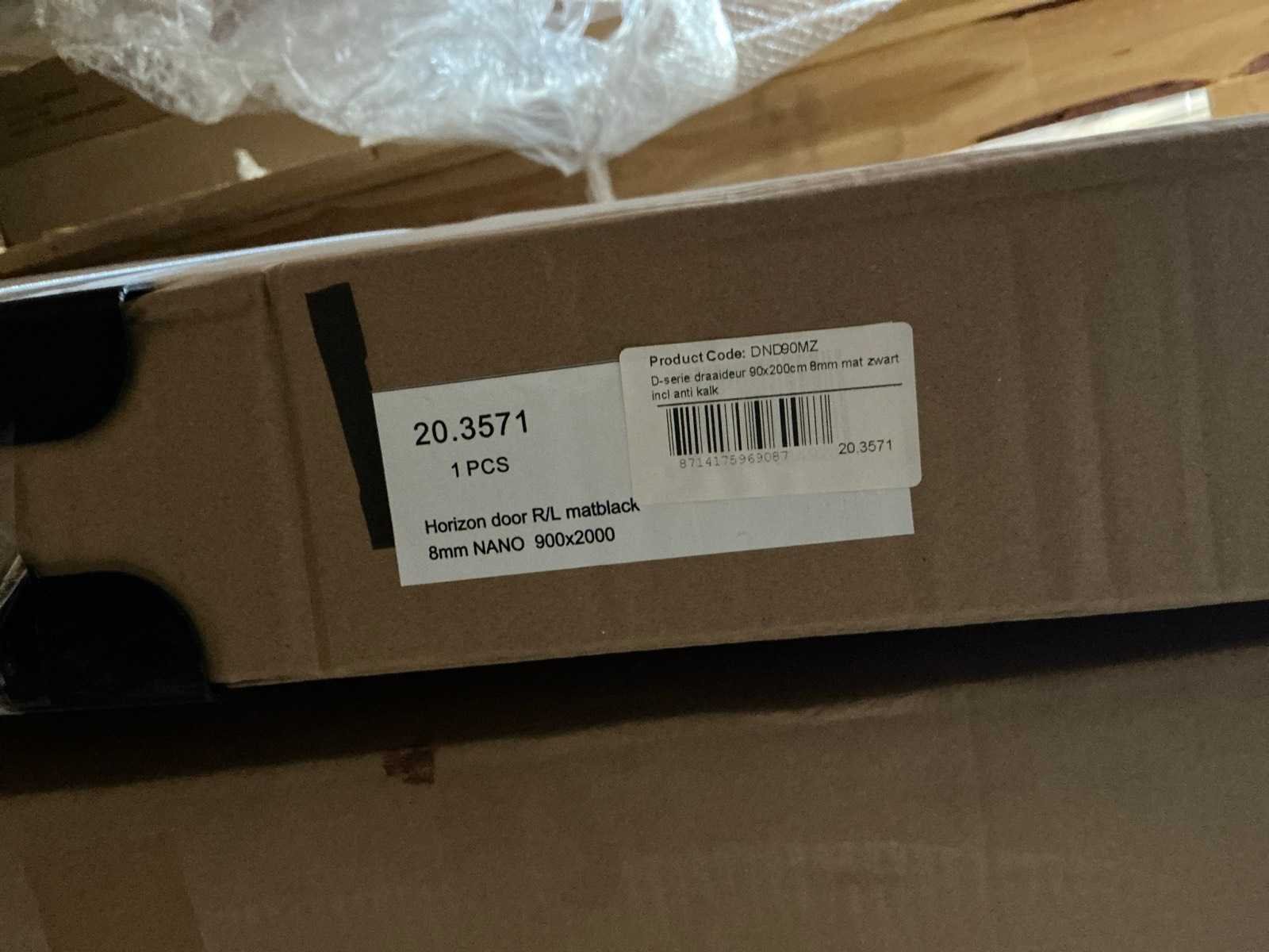 Inclusief stabilisatie stang, glasdikte 8mm Merk: Wiesbaden Model: Horizon 90x200cm Kleur: Matzwart Lengte: 90cm Hoogte: 200cm