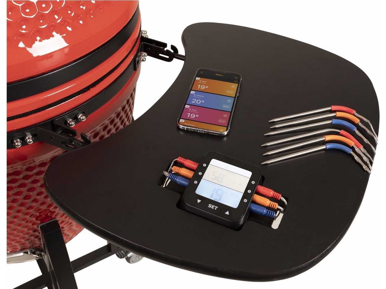 Met de Patton Premium Kamado 21" Red Devil haal je een barbecue in huis die uitblinkt in veelzijdigheid en gemak. Het ruime grilloppervlak van 47 cm biedt voldoende ruimte om voor grotere gezelschappen te grillen, terwijl het keramische ontwerp zorgt voor een optimale temperatuurregeling en luchtcirculatie. Of je nu een steak wilt grillen, pizza’s bakt, roken of slow-cooked gerechten maakt, deze rode kamado biedt altijd het perfecte resultaat. Merk: Patton Model: Red Devil 21 inch (55CCE366) Kleur: Rood Gewicht: 77kg Lengte: 130cm Breedte: 74cm Hoogte: 120cm