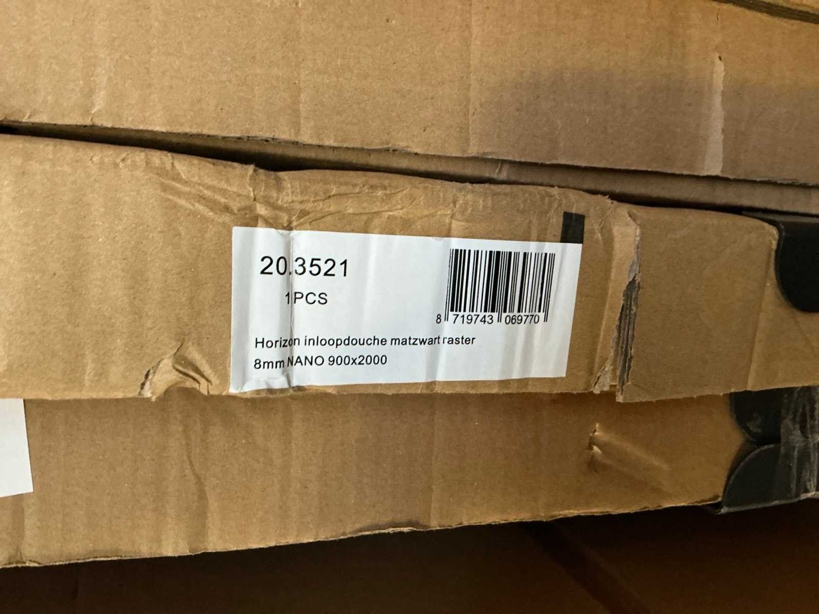 Met raster, glasdikte 8mm. Artikelnummer 20.3521 Merk: Wiesbaden Model: Horizon 90x200cm Kleur: Matzwart Lengte: 90cm Hoogte: 200cm Materiaal: Glas