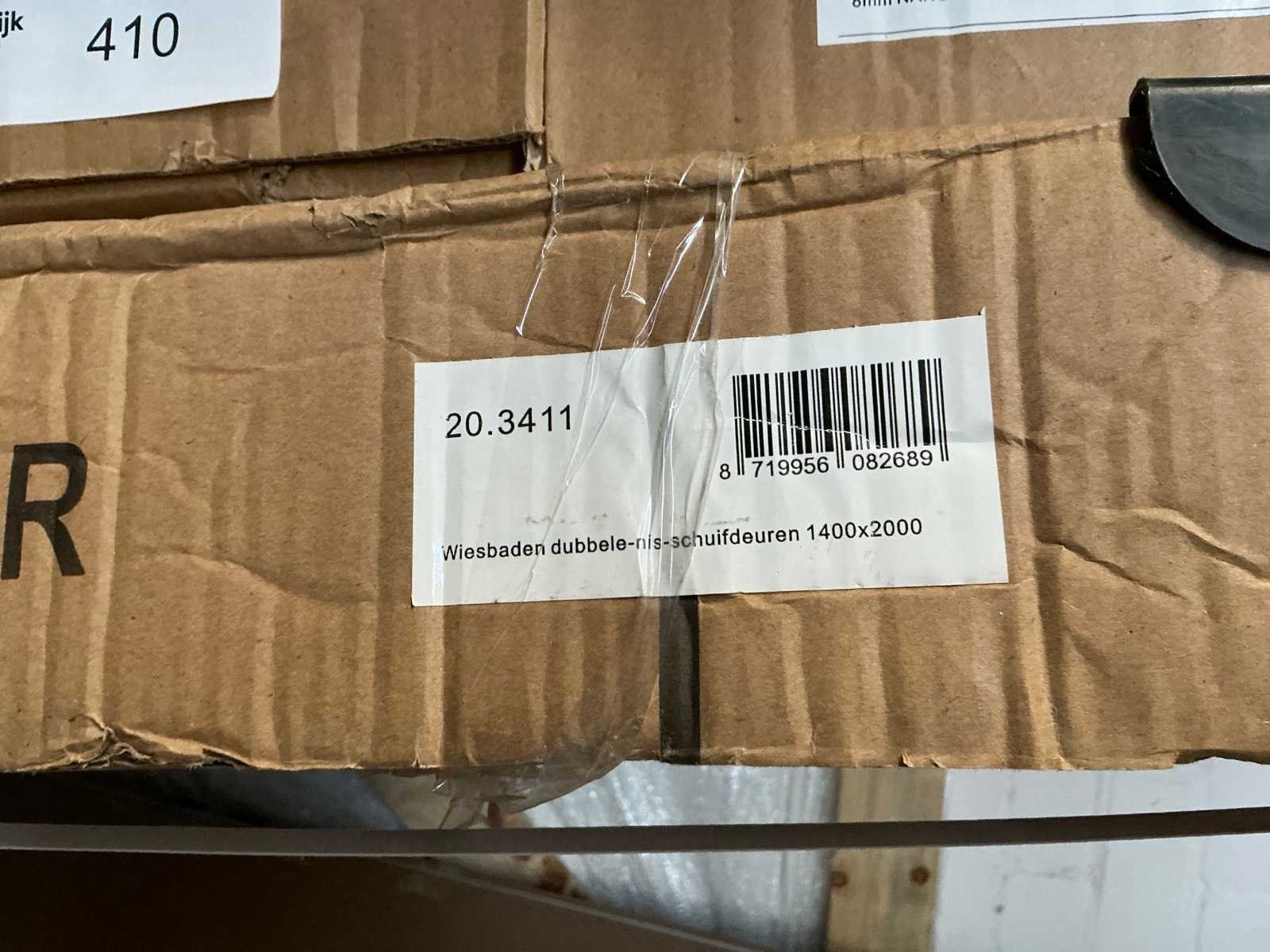 Glasdikte 8mm, artikelnummer 20.3411 Merk: Wiesbaden Model: Double slide doors 140x200cm Kleur: Helder Lengte: 140cm Hoogte: 200cm Materiaal: Glas