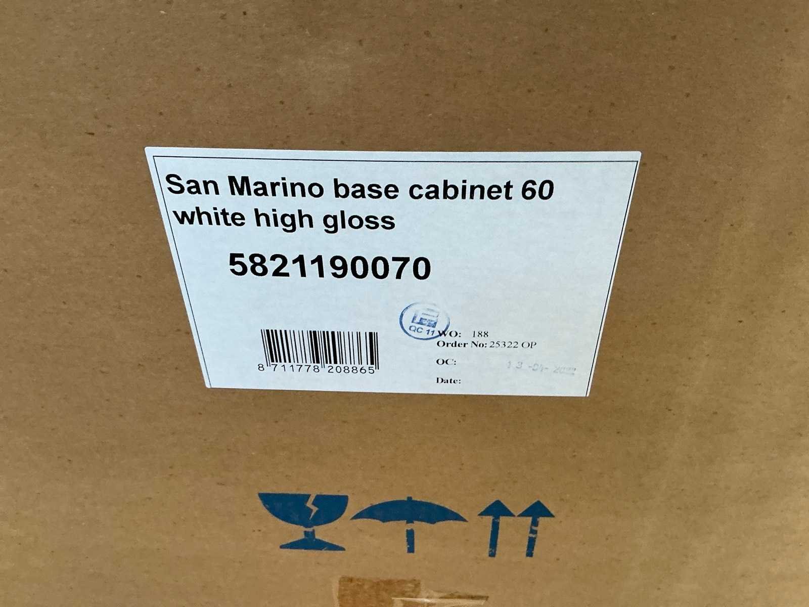 Merk: MB Model: San Marino Hoogte: 52cm Lengte: 62cm Breedte: 47cm Materiaal: Houtfineer Kleur: Wit hgl Wastafel: Ja, met kraangat en waste Lades: 2 Softclose: true