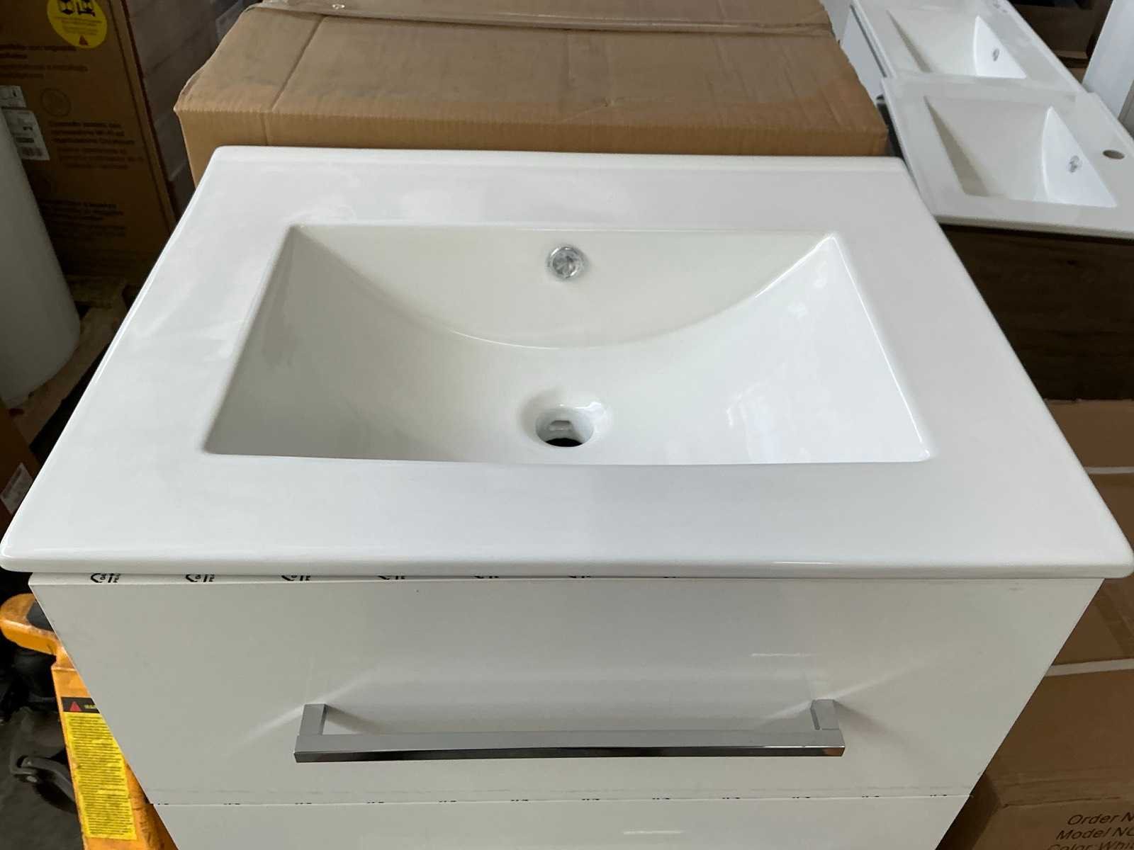 Merk: MB Model: San Marino Hoogte: 52cm Lengte: 62cm Breedte: 47cm Materiaal: Houtfineer Kleur: Wit hgl Wastafel: Ja, met kraangat en waste Lades: 2 Softclose: true