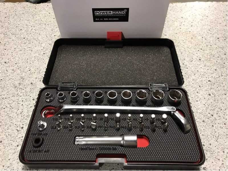 Serienummer: SIN-403.0005; omschrijving: ongebruikt in de verpakking; Type: 34 delig 1/4”