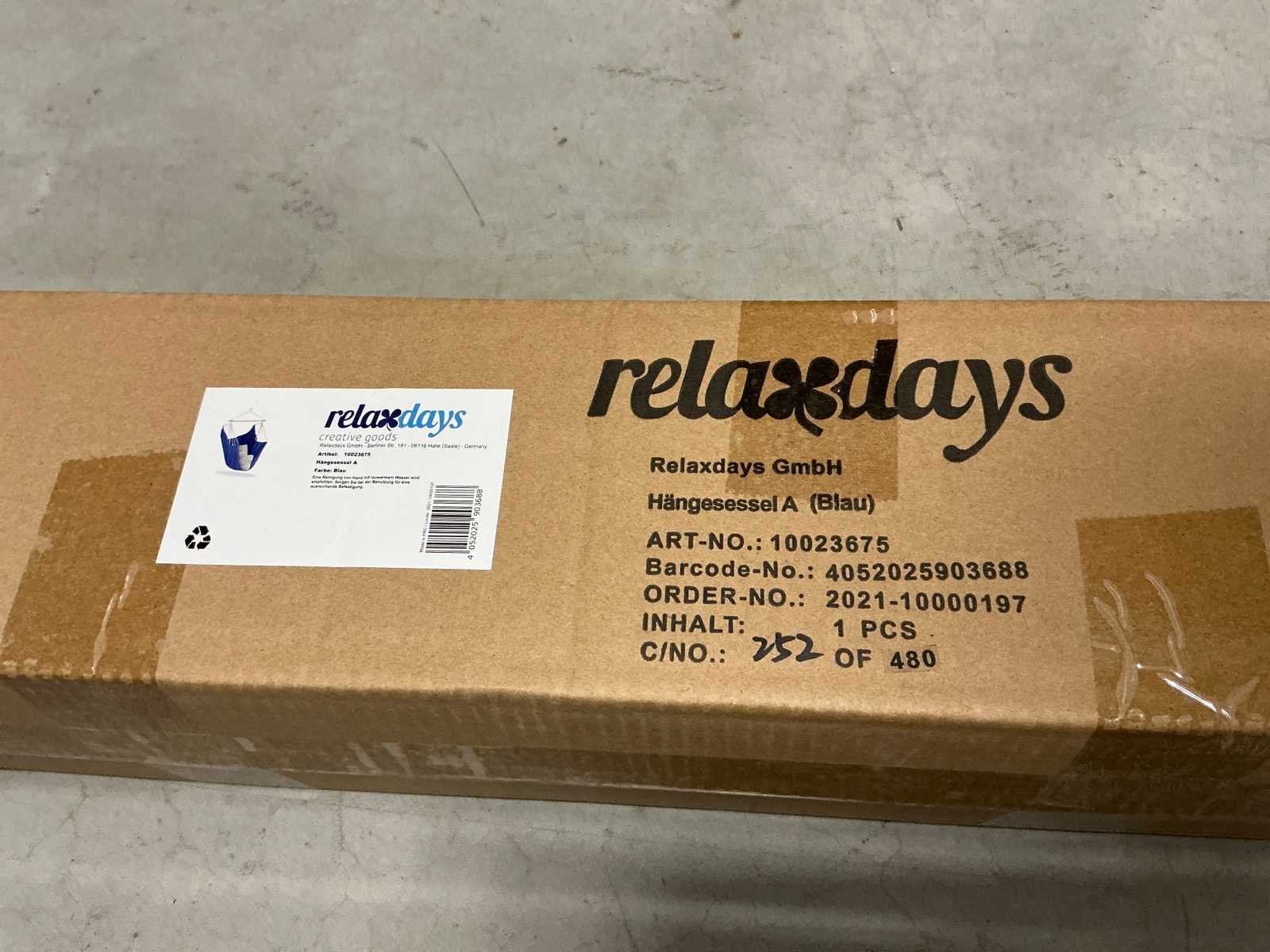 Ongebruikt in de verpakking; 1 x hangstoel; 1 x karabijnhaak; Decoratie niet inbegrepen; Tot max. 150 kg belastbaar; Ligoppervlak B x D: 165 x 130 cm Kleur: blauw