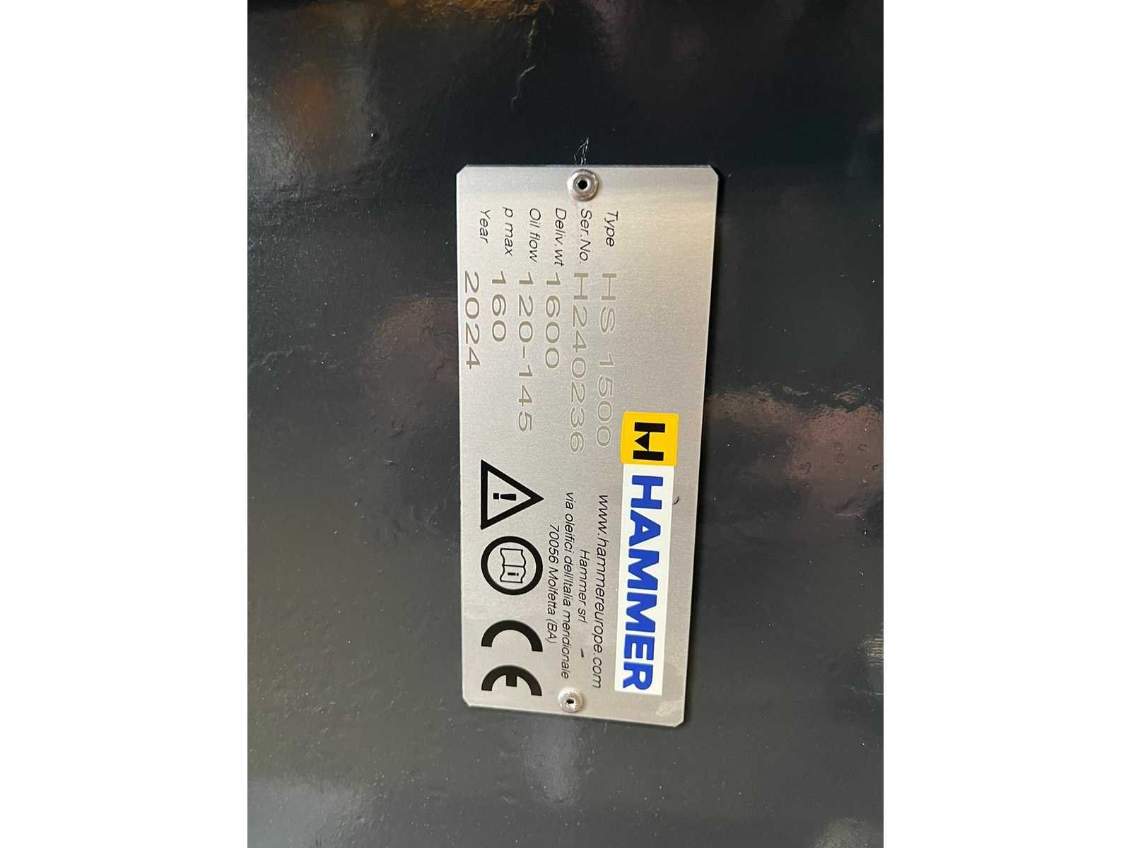 Carrier weight t 14-20: Height mm 2050: Tool diameter mm 118: Required oil supply l/min 90-120: Oil hammer pressure bar 160: Blows per minute /min 700-900: Energy per blow J 2400: Max. Back pressure bar 25: Inner diam. In hose inch 1”: Inner diam. Out hose inch 1”: unused Merk: Hammer Type: HS1500 Bouwjaar: 2024 Serienummer: H240236 Totale afmeting Hoogte: 2050mm