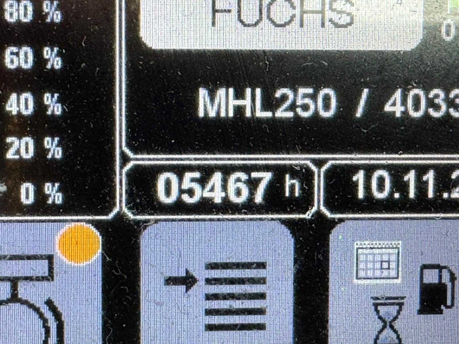 Condition: Used; CE Certified: Yes; Operating weight: 15,000 kg; Operating hours: 5,464; Grapple; Outriggers; Year: 2015 Merk: Fuchs Type: MHL250 Bouwjaar: 2015 Serienummer: 2503104033 Bedrijfsgewicht: 15000kg Afgelezen urenstand: 5464