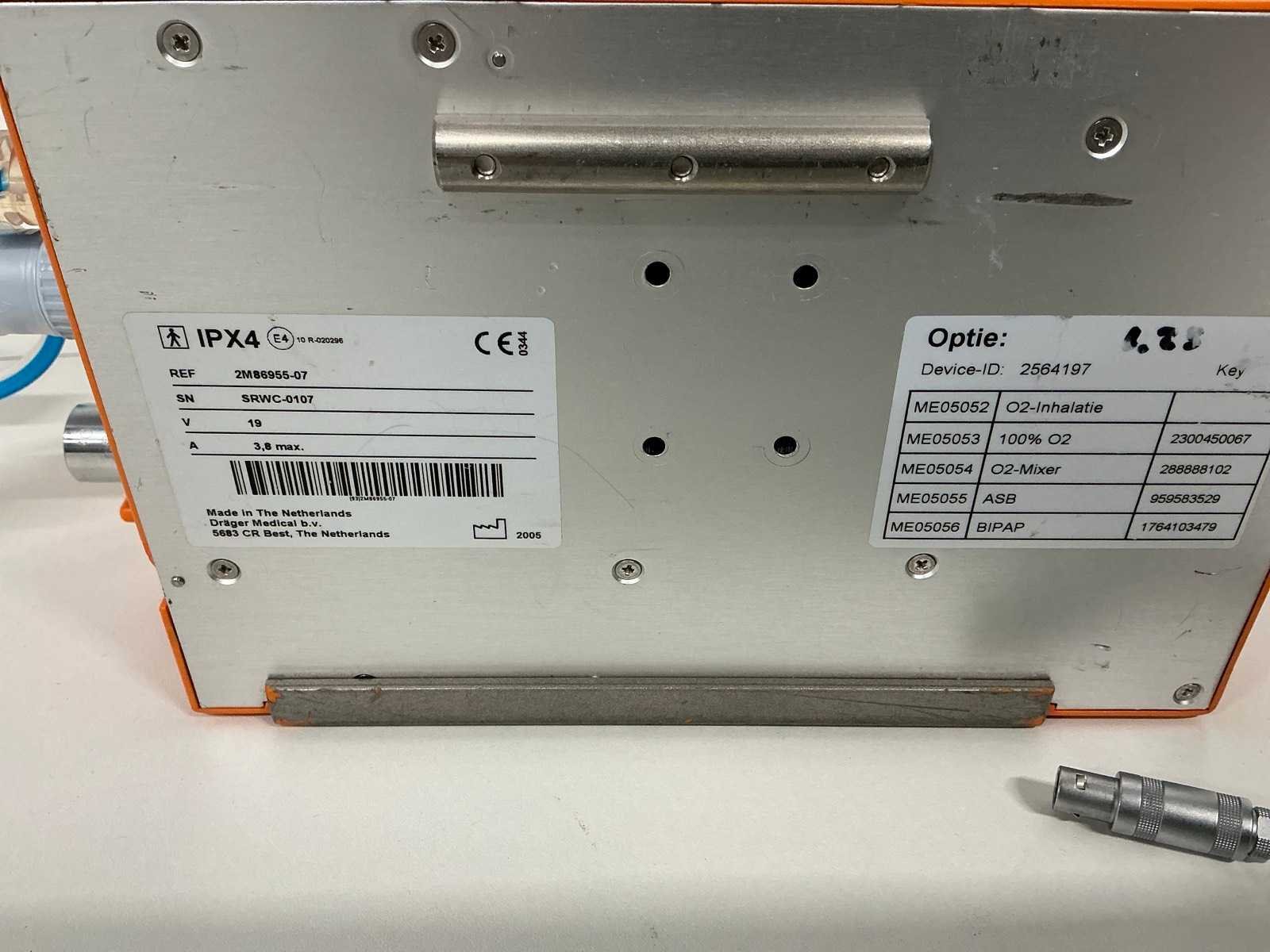 Merk: Dräger Type: Oxylog 3000 Serienummer: SRCW-0107 Aansluiting: 230V