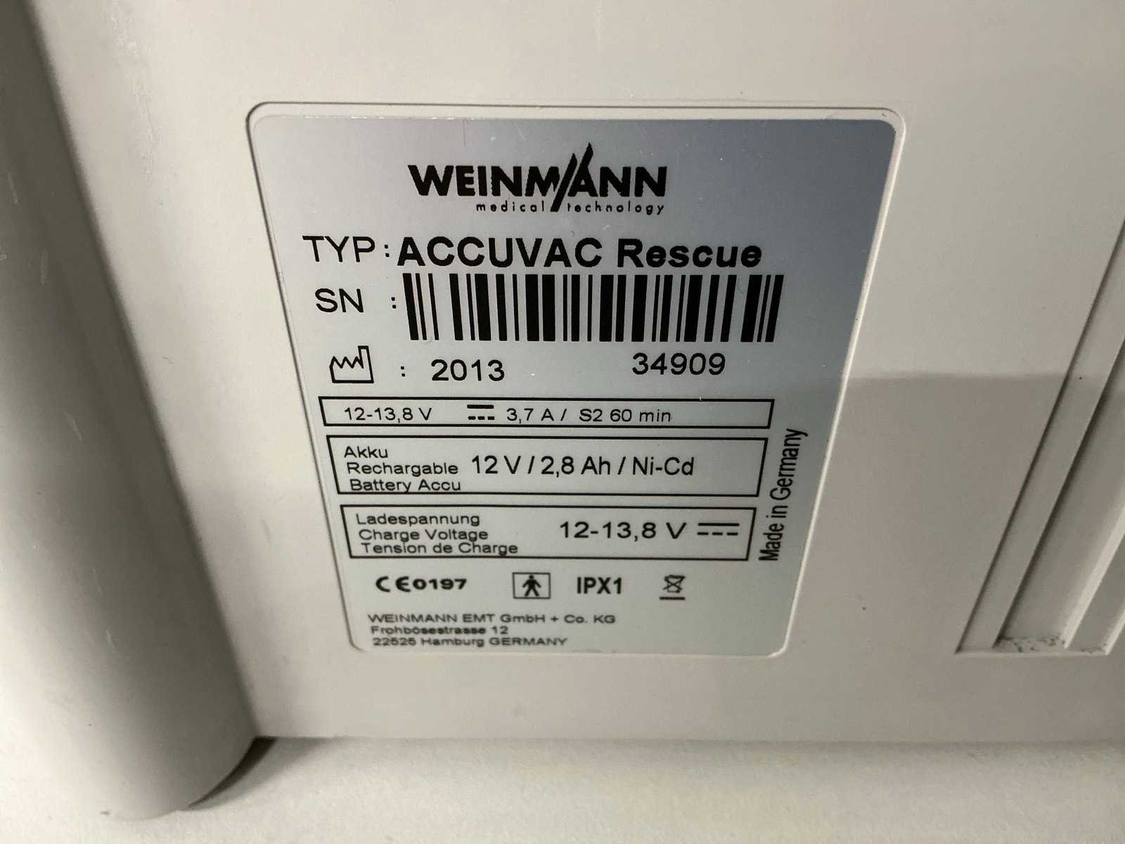 230V en 12V aansluiting Merk: Weinmann Type: ACCUVAC RESCUE Serienummer: 34909 Aansluiting: 230V