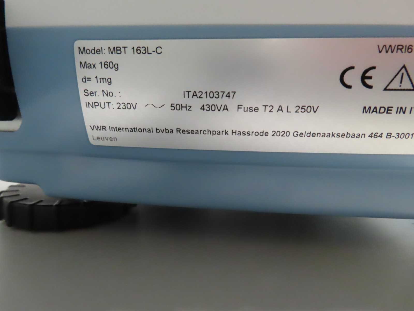 Merk: VWR Type: MBT 163L-C Serienummer: ITA2103747