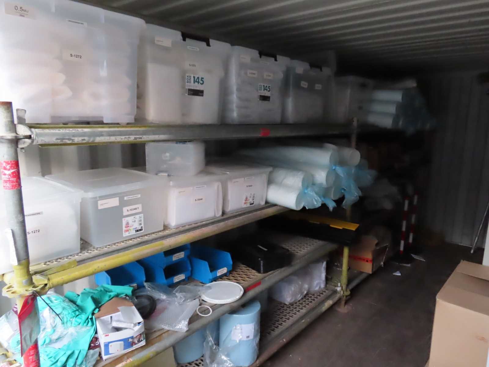 Betreft de gehele inhoud van de container, inclusief kasten / stellingen / etc. Let op, ophalen begin ophaaldag, u dient alles mee te nemen.