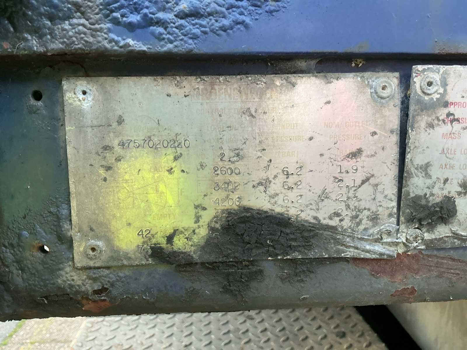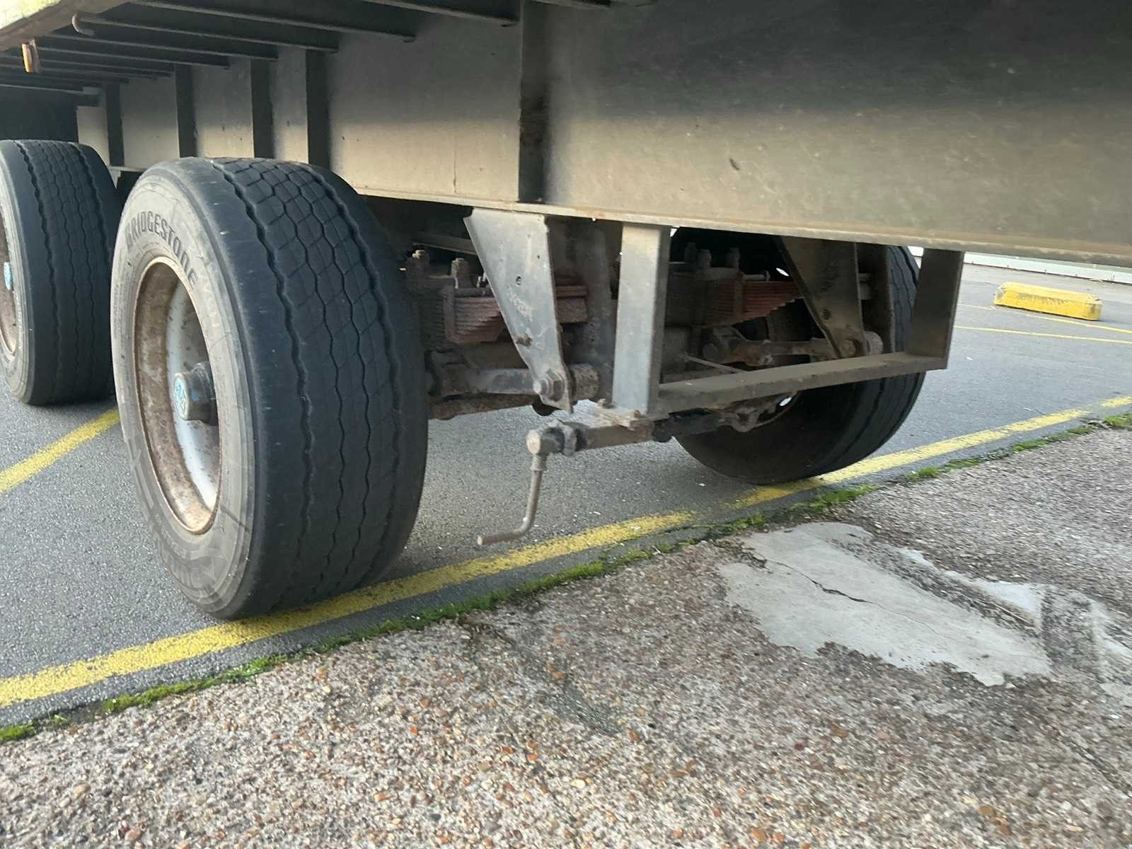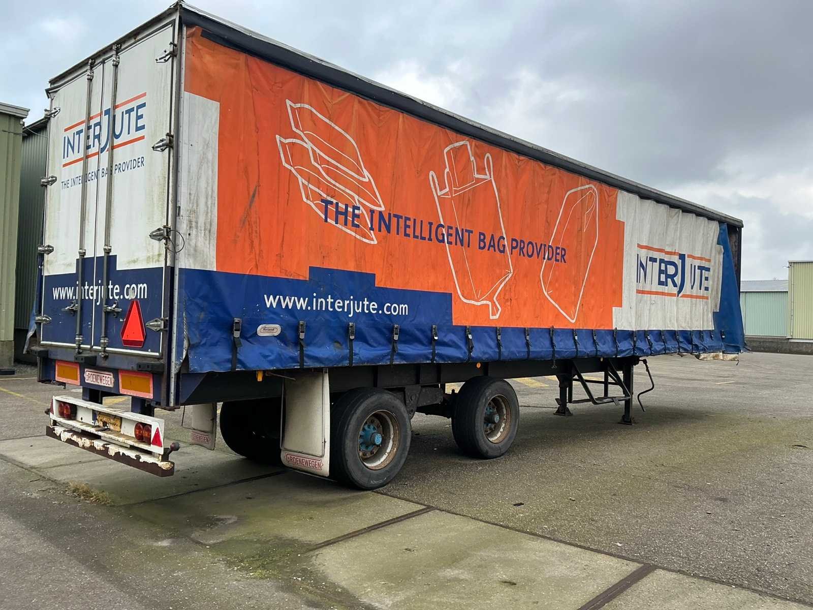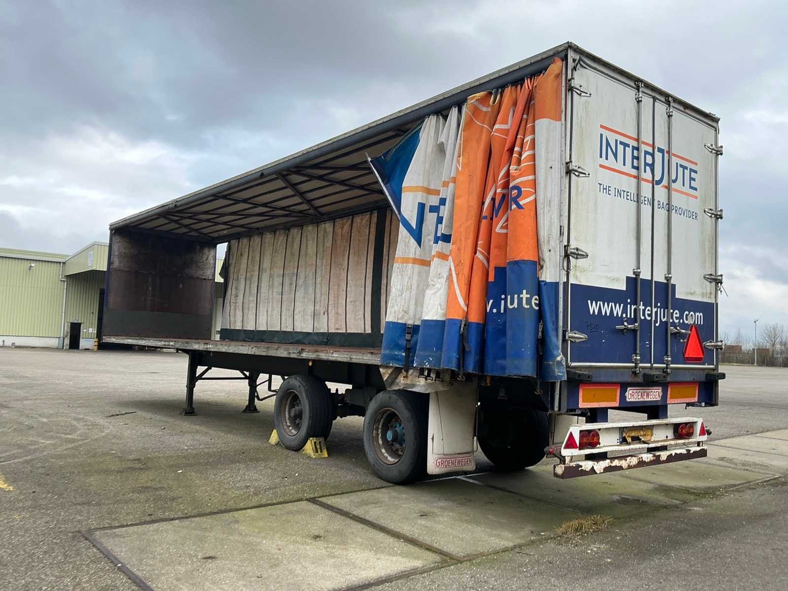 Max massa 32000kg, wielbasis 902cm; Hart koppeling achterzijde trailer 1150cm, bladgeveerde BPW assen, langdurig stil gestaan, schuifzeilen kapot Merk: Groenewegen Type: DRO-12-20 Bouwjaar: 1984 Chassisnummer VIN: 8810258 Kenteken: OF-23-42 Datum eerste toelating (NL): 1984-07-03 Datum eerste toelating: 1984-07-03 APK vervaldatum: 2017-04-05 Aantal assen: 2 Laadvermogen: 24700kg Eigen gewicht: 7300kg Totale afmeting L: 1280mm Totale afmeting Breedte: 2550mm Zelf rijdend exporteren: Nee No self drive export!: true