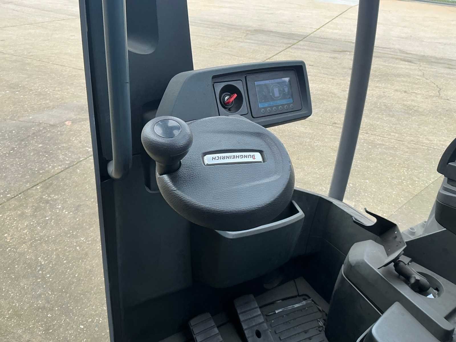 Inclusief 400Volt lader, voorzien van camera tussen de vorken. Voorbereidingkabel voor Honeywell Thor VM1D unit vb Merk: Jungheinrich Type: ETV216i Bouwjaar: 2021 Serienummer: 91159263 Afgelezen urenstand: 3200 Accu lader: true Free-lift: true Side-shift: true Triple mast: true Hefvermogen: 1600kg Lepellengte: 1150mm Hefhoogte: 7300mm Minimale doorrijhoogte: 3040mm Totale afmeting L: 3100mm Totale afmeting Breedte: 1320mm Totale afmeting Hoogte: 3030mm