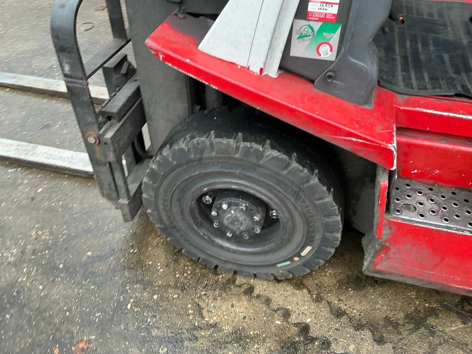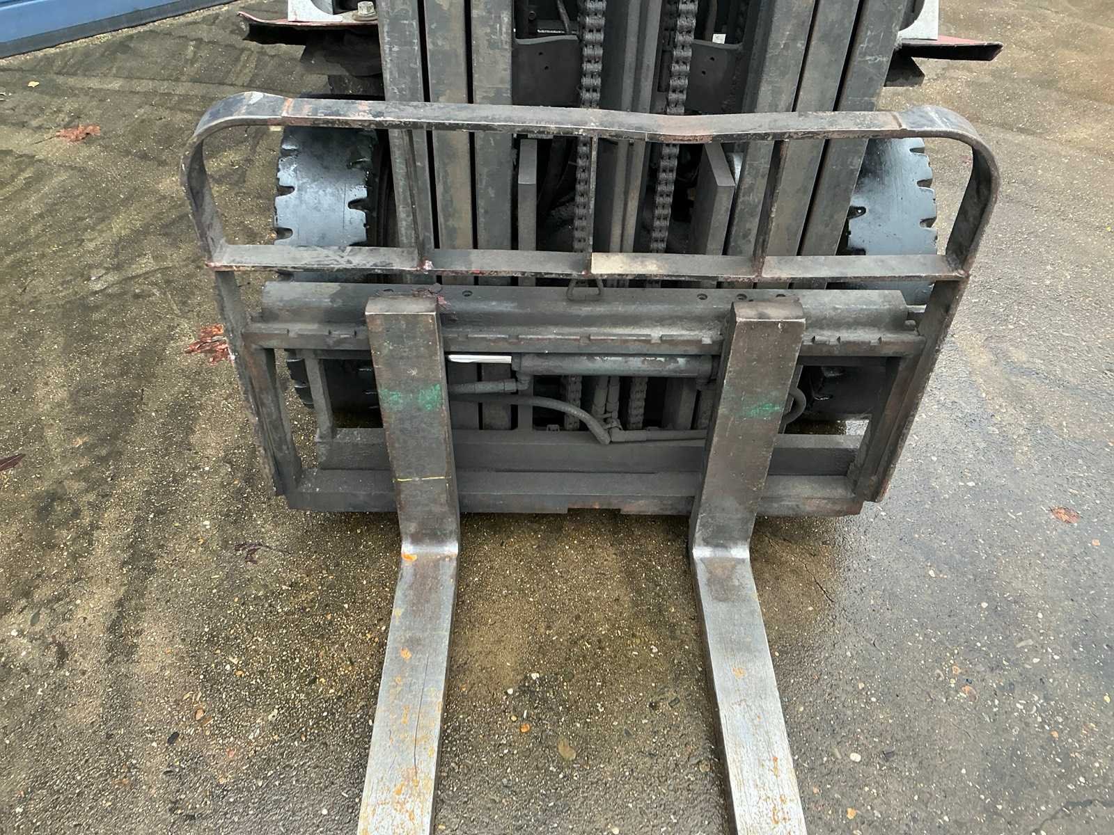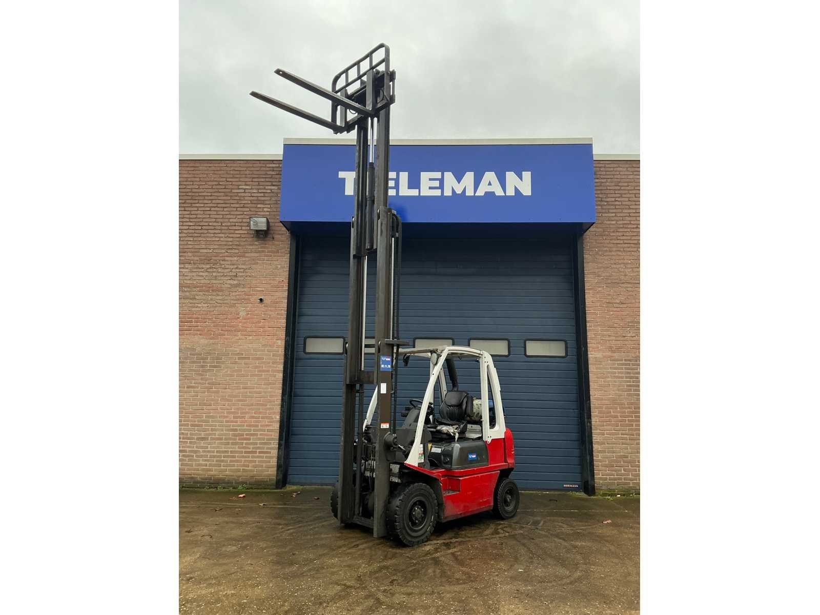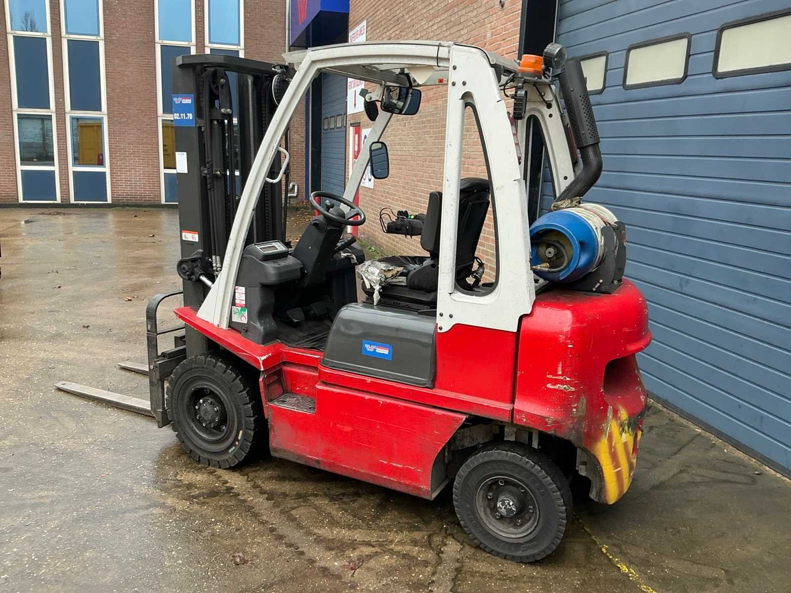 Let op! Zonder de gastank Merk: Nissan Type: U1D2A20LQ Bouwjaar: 2013 Serienummer: U1D2E703960 Brandstof: LPG Soort band: Massief Aantal wielen: 4 Afgelezen urenstand: 12315 Free-lift: true Side-shift: true Triple mast: true Eigen gewicht: 3800kg Hefvermogen: 1700kg Lepellengte: 1140mm Max. hefhoogte: 4750mm Minimale doorrijhoogte: 2150mm Totale afmeting L: 3600mm Totale afmeting Breedte: 1150mm