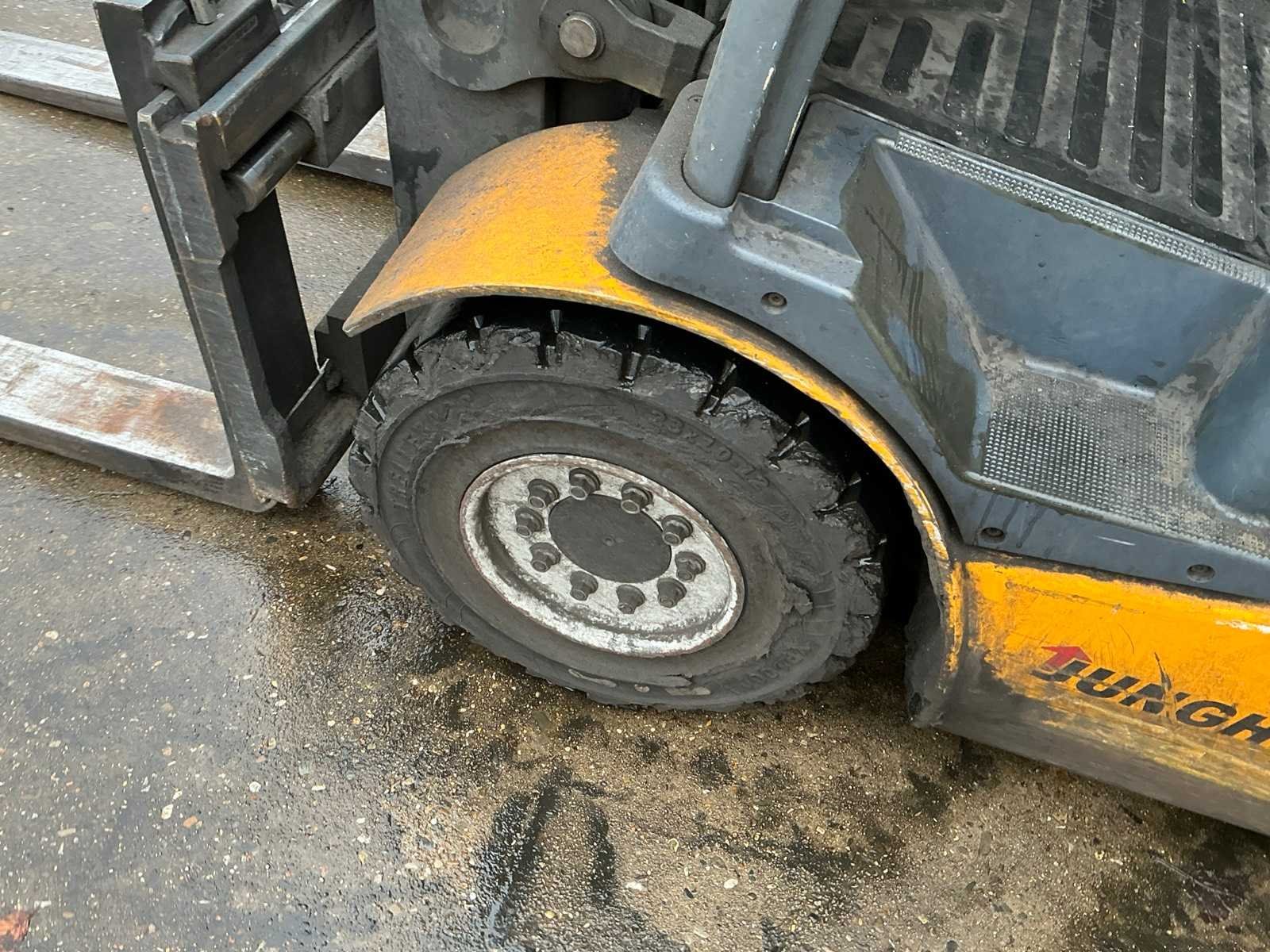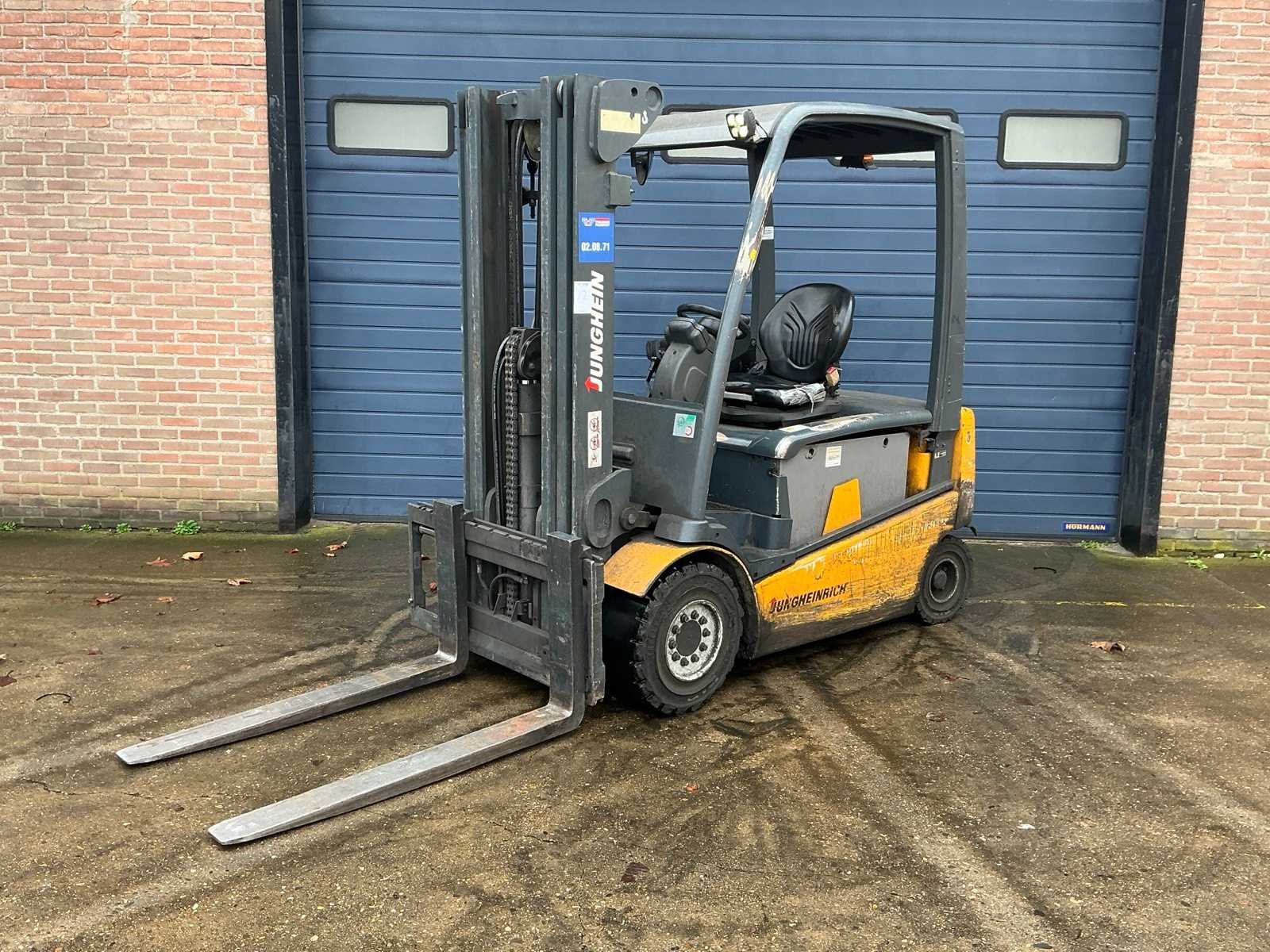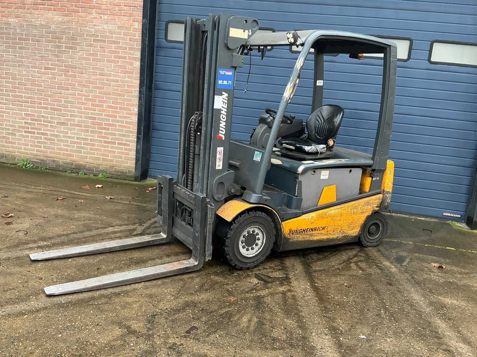 Inclusief 400Volt lader Merk: Jungheinrich Type: EFG430 Bouwjaar: 2010 Serienummer: FN405861 Brandstof: Elektrisch Mast: Triple Soort band: Volrubber banden Aantal wielen: 4 Afgelezen urenstand: 13378 Free-lift: true Side-shift: true Triple mast: true Hefvermogen: 2850kg Max. hefhoogte: 4700mm Minimale doorrijhoogte: 2230mm Totale afmeting L: 3700mm Totale afmeting Breedte: 1220mm Totale afmeting Hoogte: 2230mm