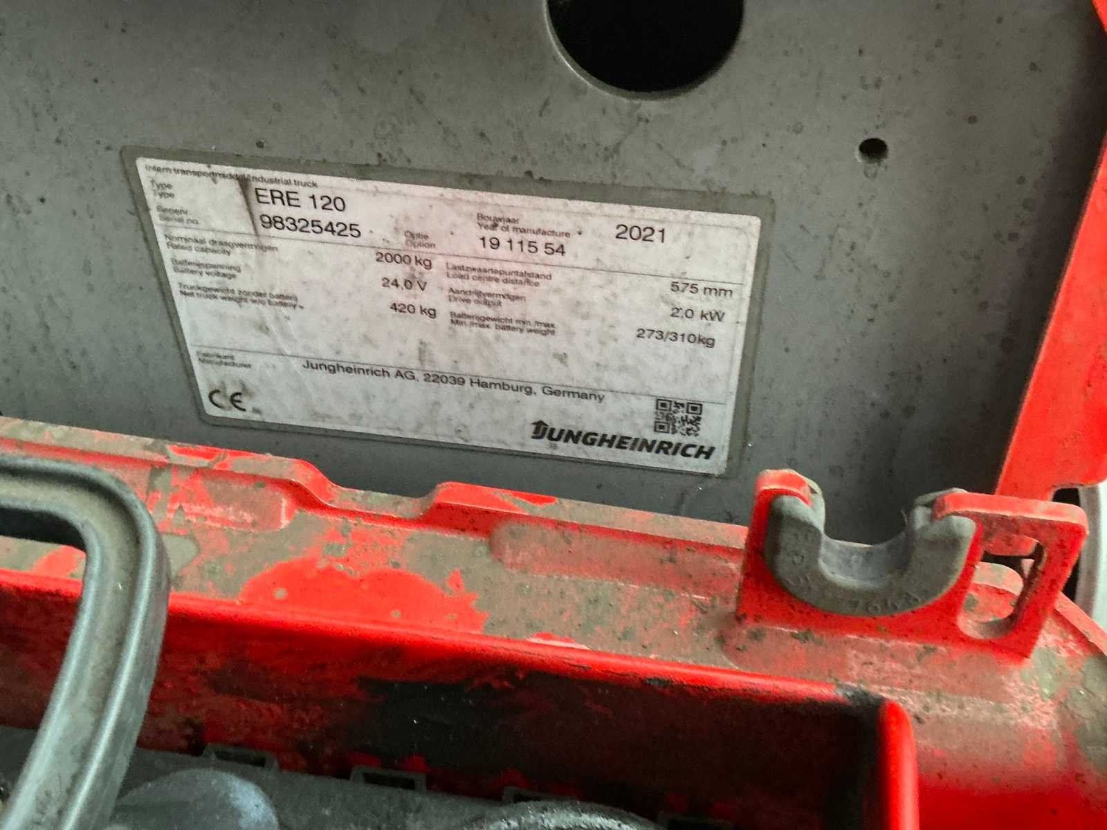 230Volt acculader Merk: Jungheinrich Type: ERE120 Bouwjaar: 2021 Serienummer: 98325425 Hefvermogen: 2000kg Lepellengte: 1140mm Meerij palletwagen: true Accu lader: true Totale afmeting L: 2500mm Totale afmeting Breedte: 800mm Totale afmeting Hoogte: 1500mm