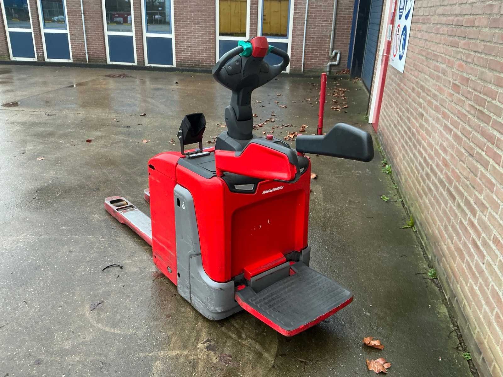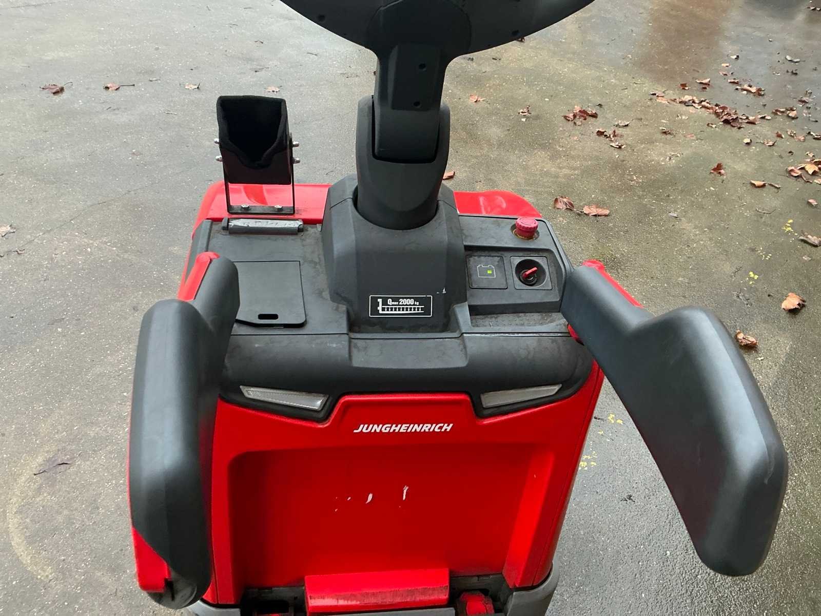 230Volt acculader Merk: Jungheinrich Type: ERE120 Bouwjaar: 2021 Serienummer: 98325430 Hefvermogen: 2000kg Lepellengte: 1140mm Meerij palletwagen: true Accu lader: true Totale afmeting L: 2500mm Totale afmeting Breedte: 800mm Totale afmeting Hoogte: 1500mm