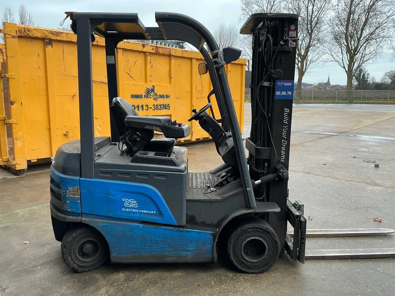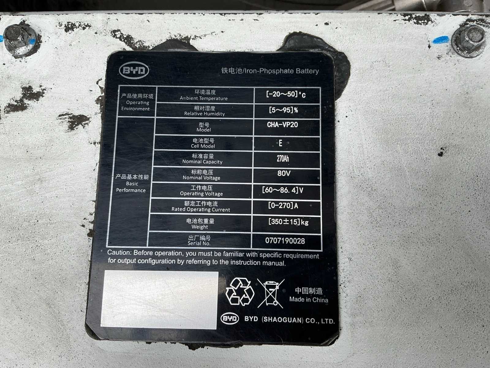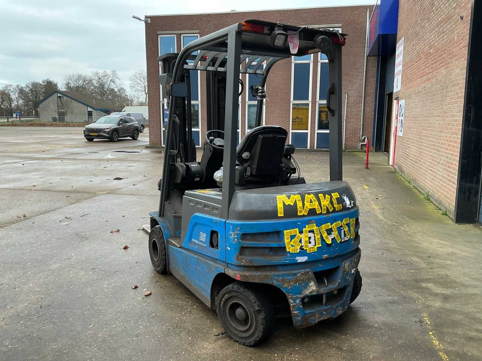 Inclusief 400Volt lader Merk: BYD Type: ECB25C Bouwjaar: 2019 Serienummer: 0702181199 Brandstof: Elektrisch Mast: Triple Soort band: Volrubber banden Aantal wielen: 4 Afgelezen urenstand: 9890 Accu lader: true Free-lift: true Side-shift: true Eigen gewicht: 4500kg Lepellengte: 1200mm Max. hefhoogte: 4700mm Minimale doorrijhoogte: 2230mm Totale afmeting L: 3600mm Totale afmeting Breedte: 1220mm Totale afmeting Hoogte: 2230mm