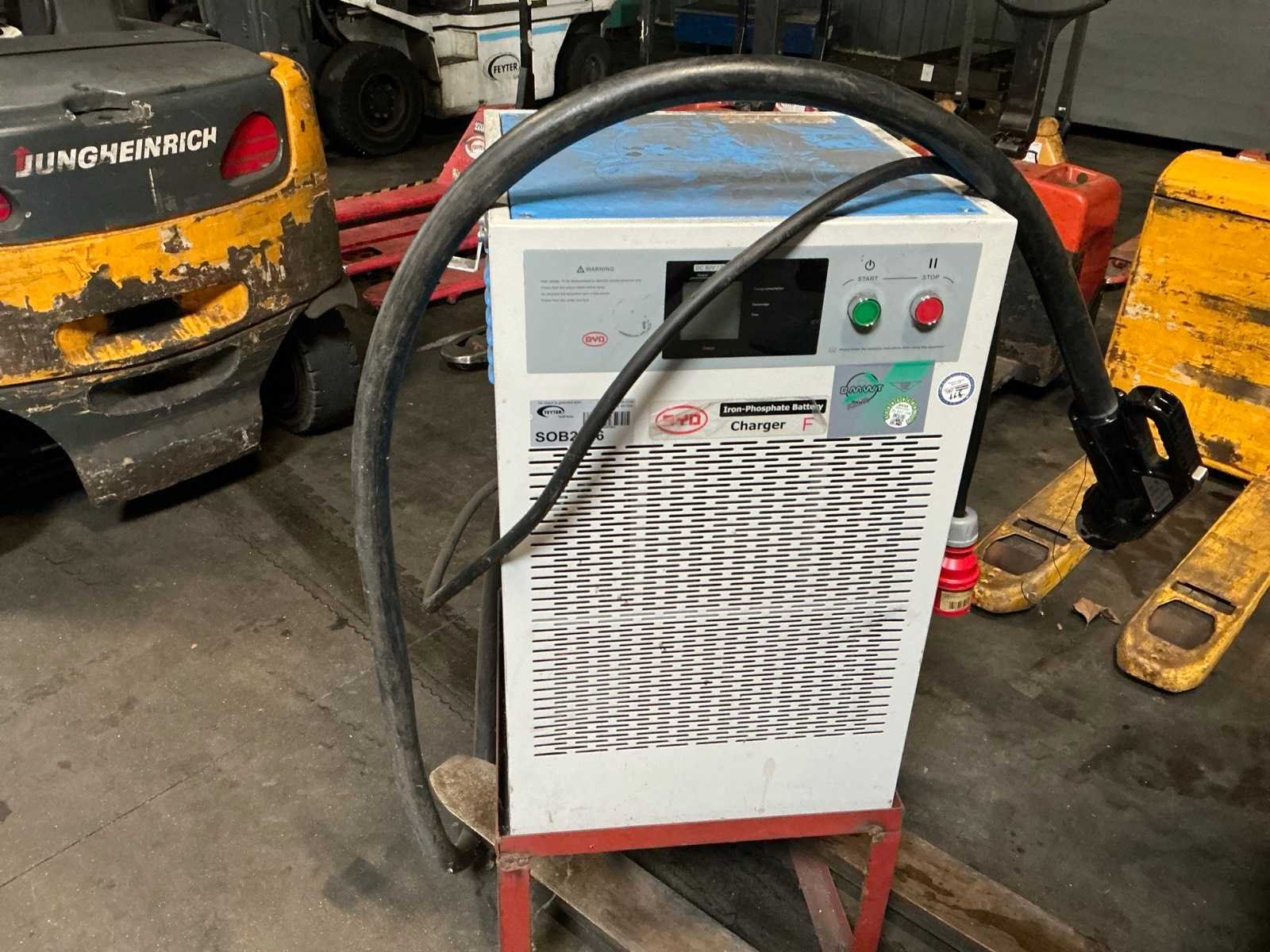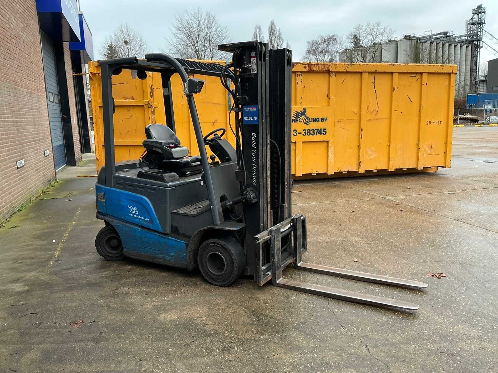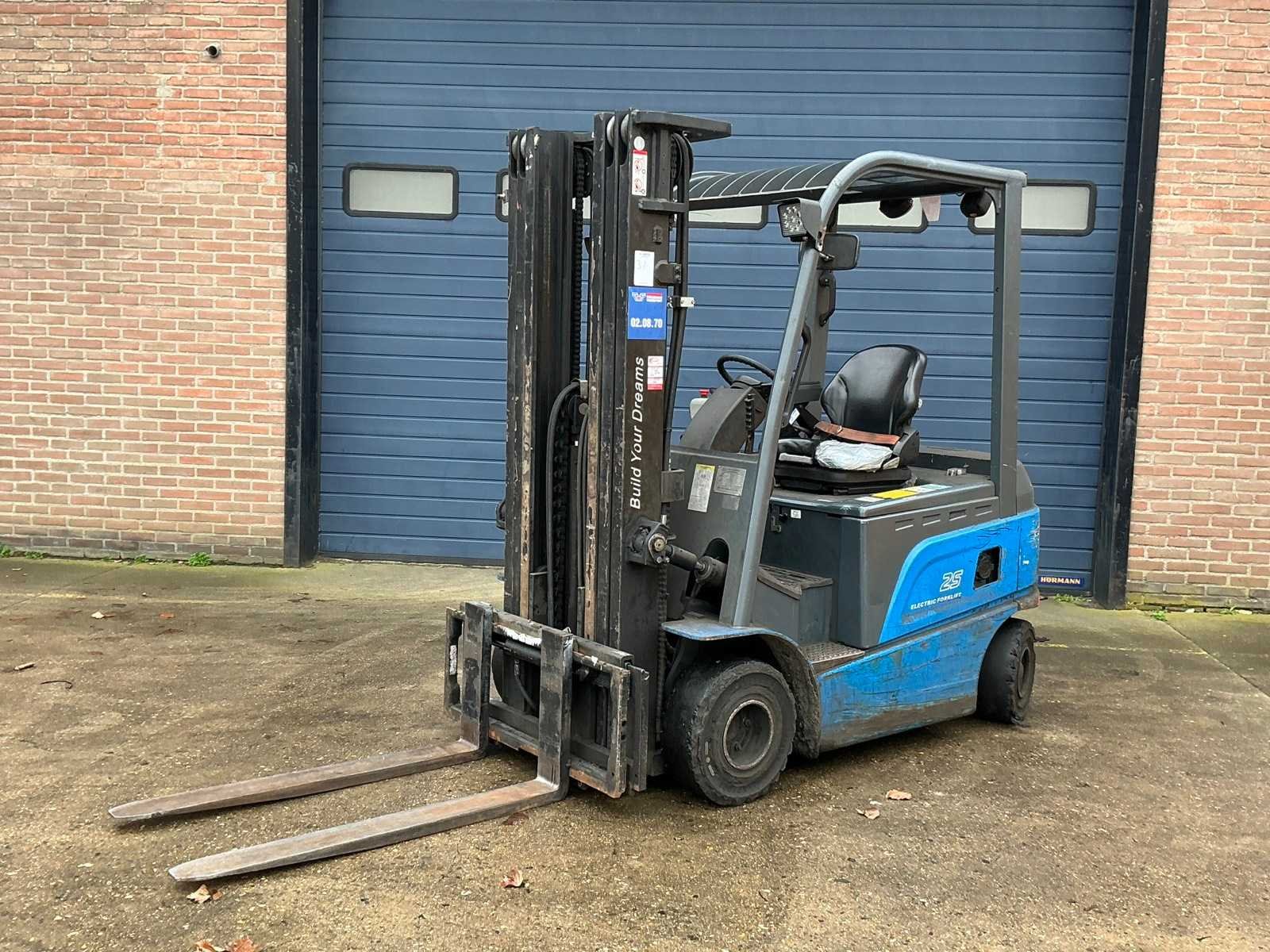 Inclusief 400Volt lader Merk: BYD Type: ECB25C Bouwjaar: 2019 Serienummer: 0702181199 Brandstof: Elektrisch Mast: Triple Soort band: Volrubber banden Aantal wielen: 4 Afgelezen urenstand: 9890 Accu lader: true Free-lift: true Side-shift: true Eigen gewicht: 4500kg Lepellengte: 1200mm Max. hefhoogte: 4700mm Minimale doorrijhoogte: 2230mm Totale afmeting L: 3600mm Totale afmeting Breedte: 1220mm Totale afmeting Hoogte: 2230mm