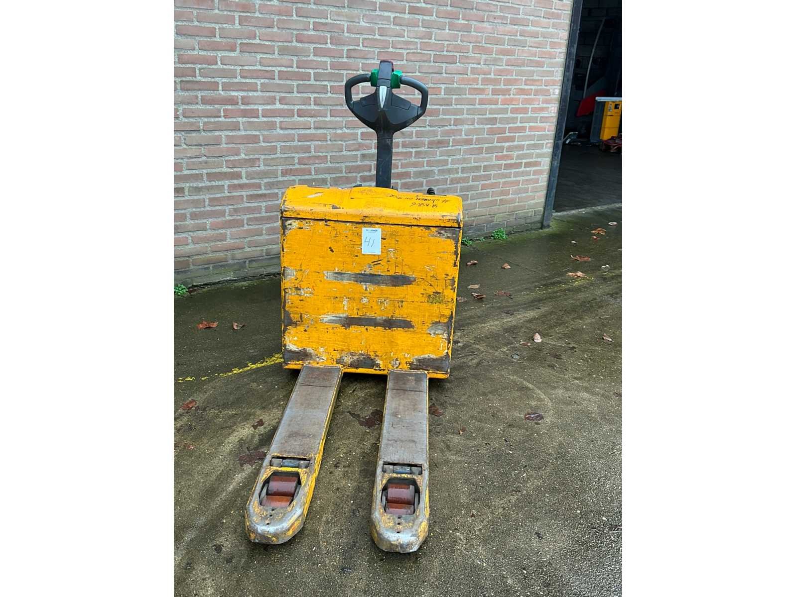 Voorzien van ingebouwde 230 volt lader Merk: Jungheinrich Type: EJE116 Bouwjaar: 2012 Serienummer: 98059295 Hefvermogen: 1600kg Lepellengte: 1000mm Afgelezen urenstand: 491 Totale afmeting L: 1500mm Totale afmeting Breedte: 730mm Totale afmeting Hoogte: 1350mm
