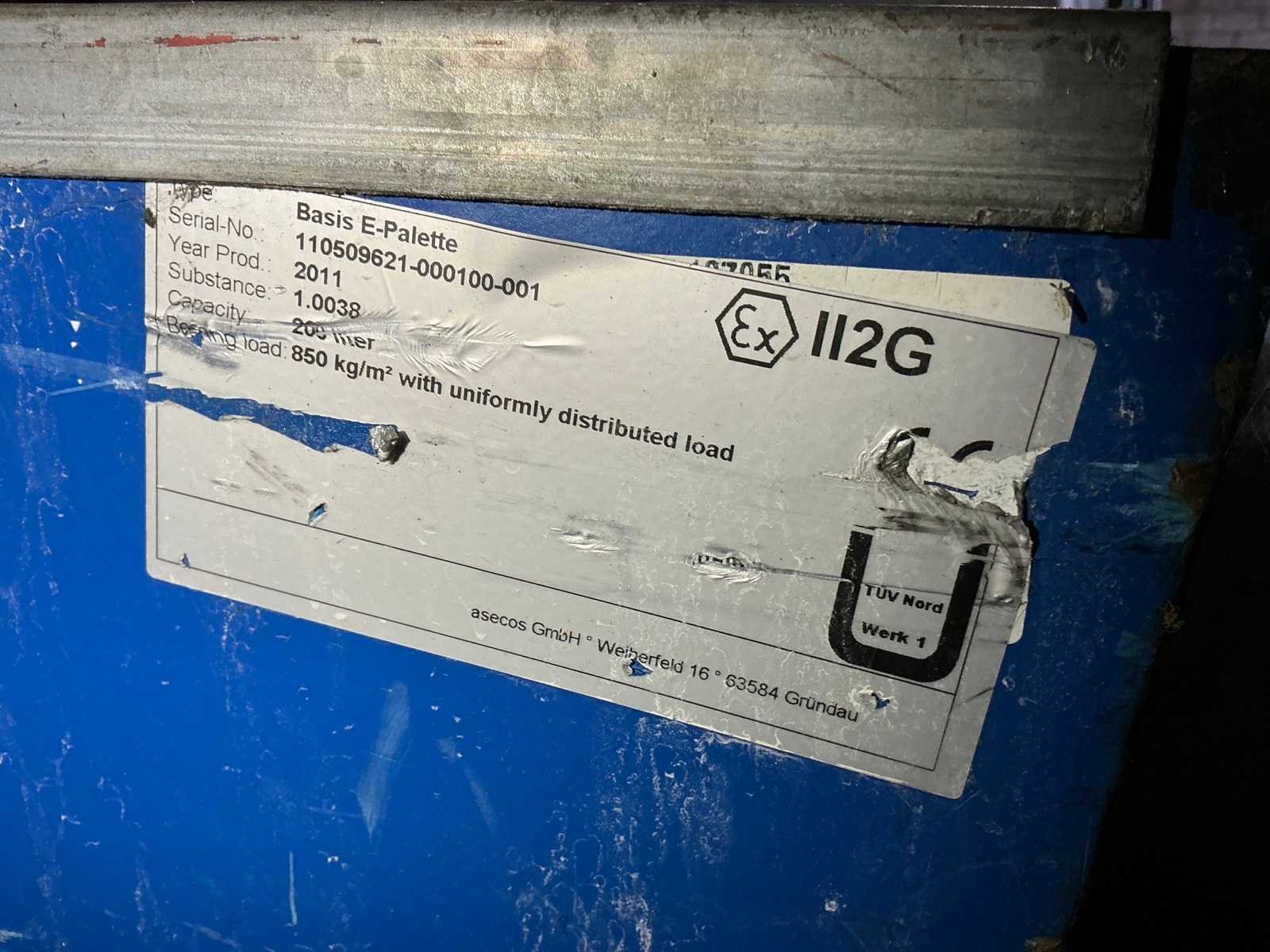 Staal Merk: Asecos Type: Basis E palette Bouwjaar: 2011 Totale afmeting L: 1250mm Totale afmeting Breedte: 820mm Totale afmeting Hoogte: 360mm