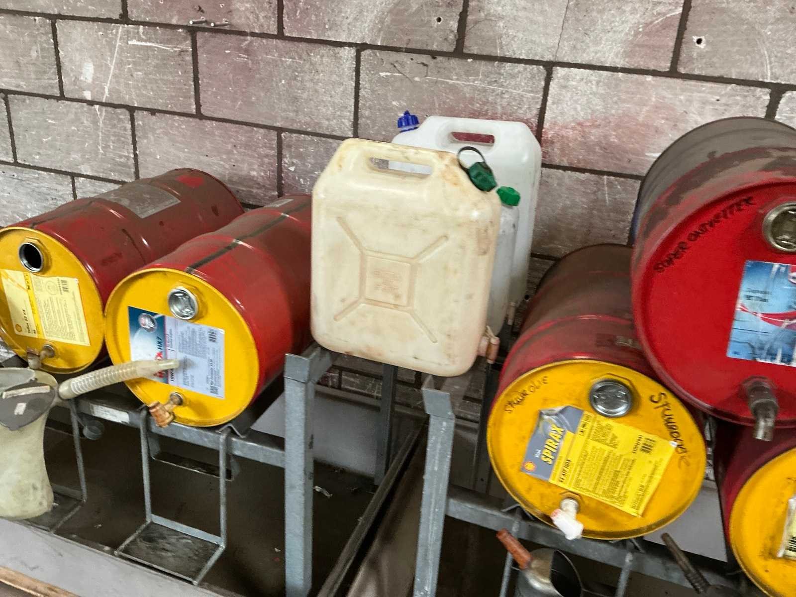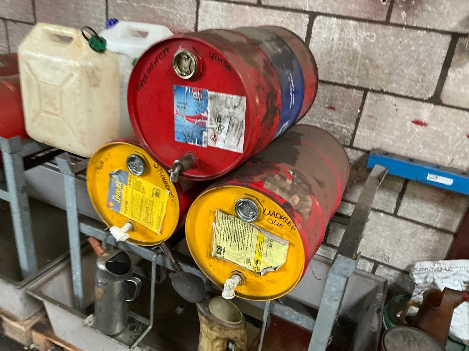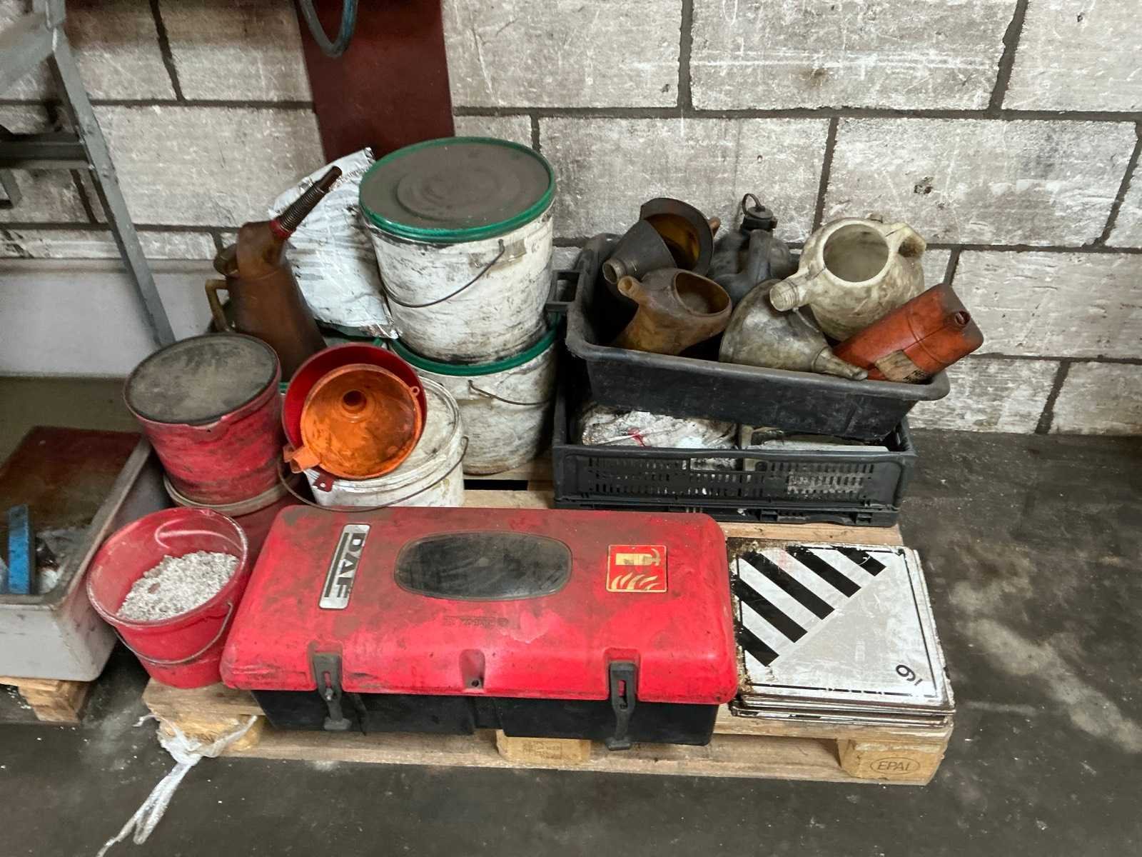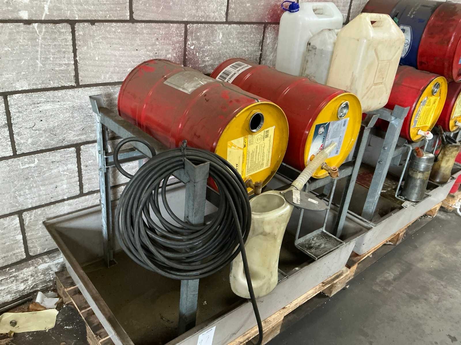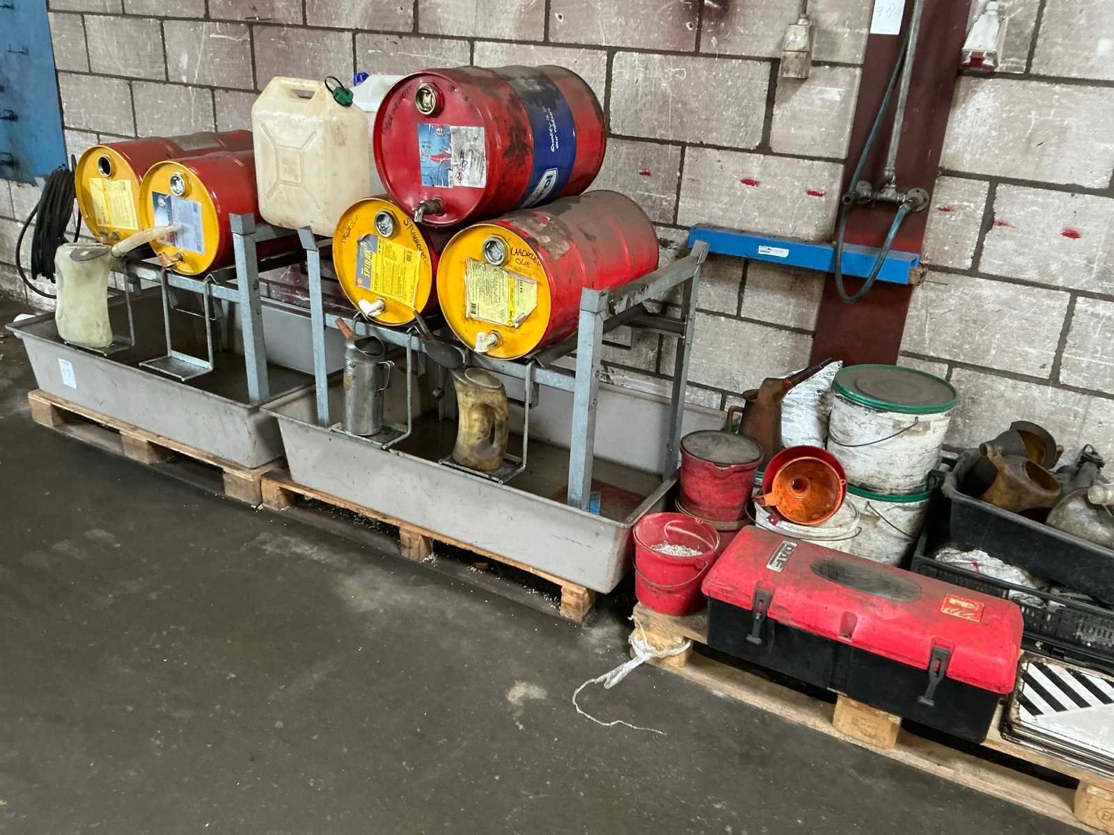 Inclusief aangebroken vaten met o.a. smeermiddelen, etcetera op en inclusief 3 palllets
