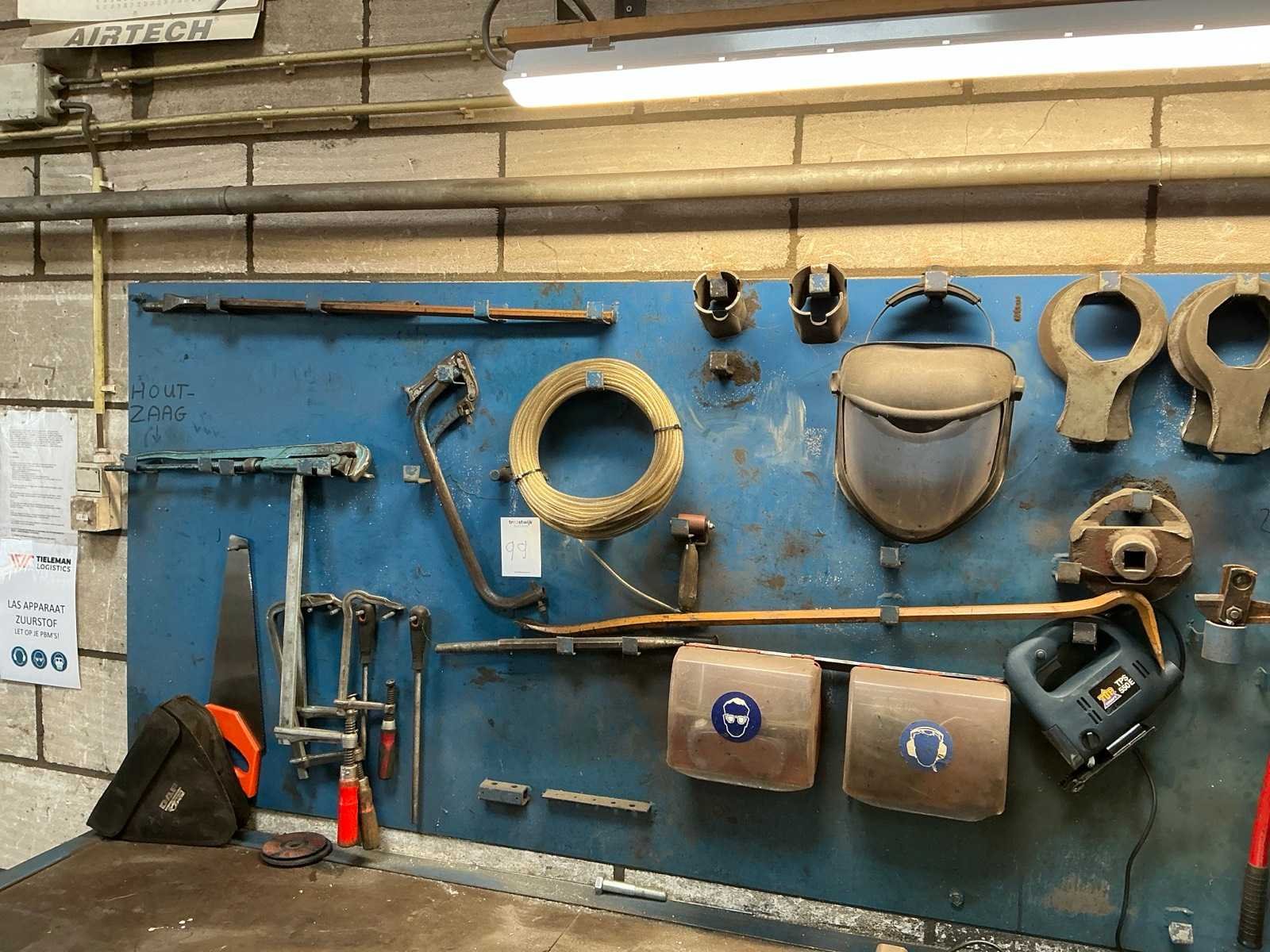 Bestaande uit onder andere krachtdoppen, slagringsleutels, pijptang, constructietangen, etecetera, Aan wandbord