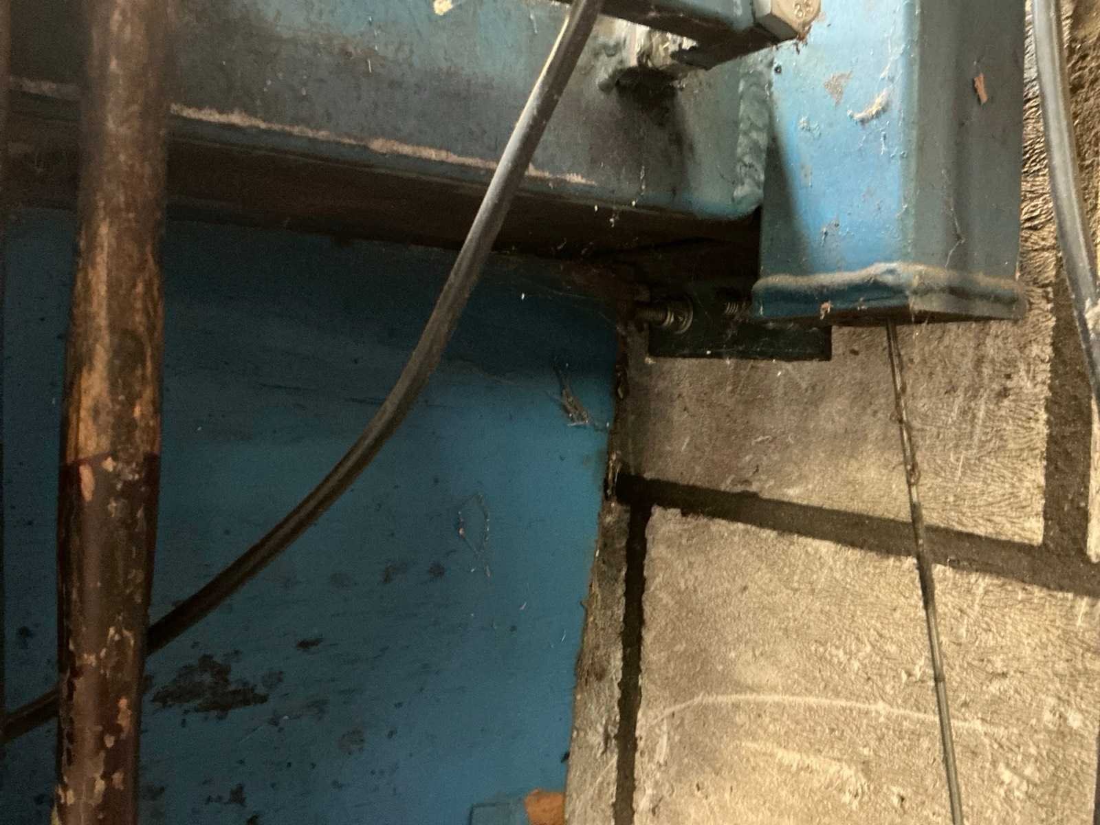 Wandgemonteerde werkbank, lengte totaal 320cm, breedte werkblad 62cm.