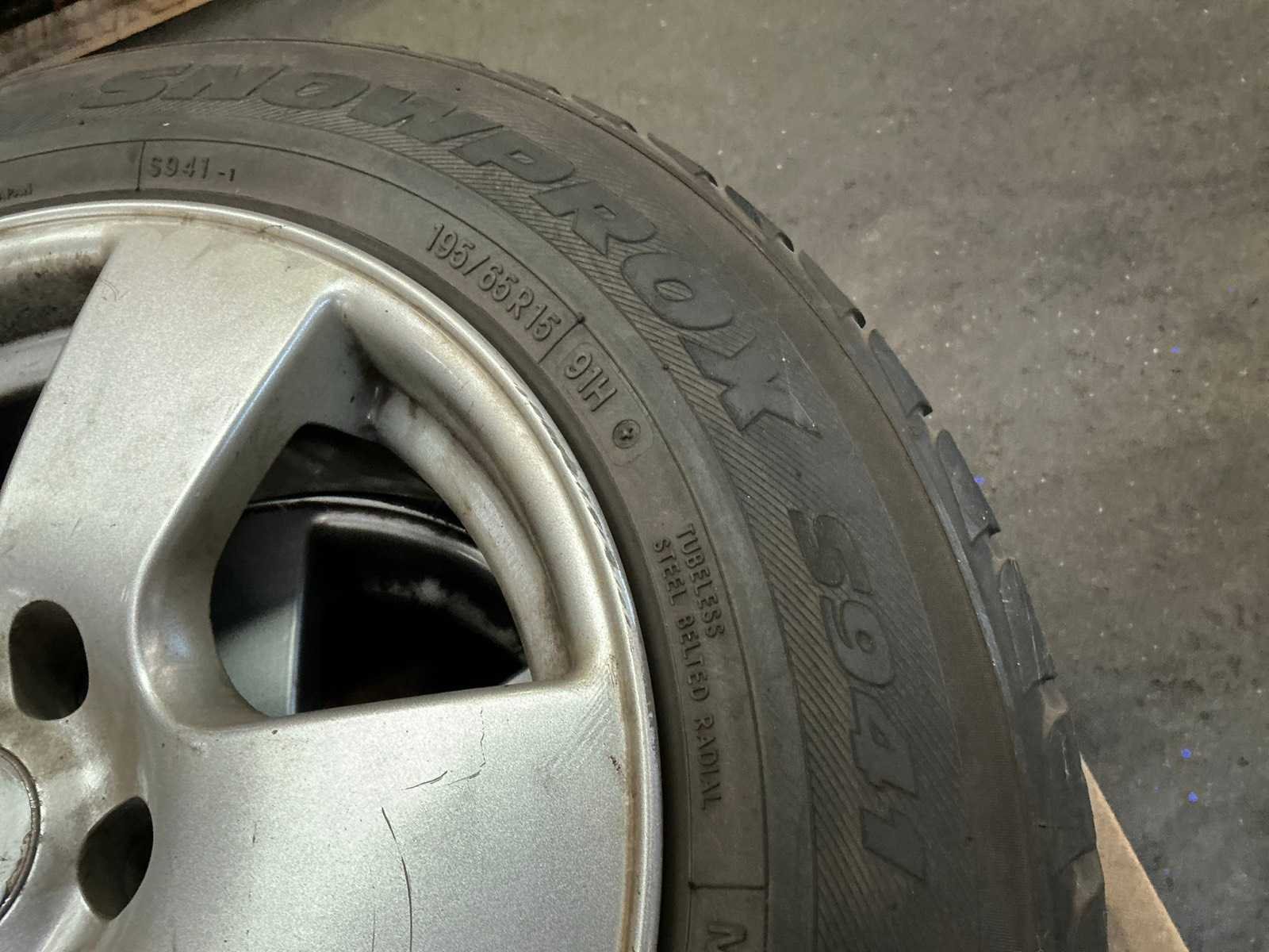 Winterbanden, maat 195/65R15 91H, naafdoppen ontbreken
