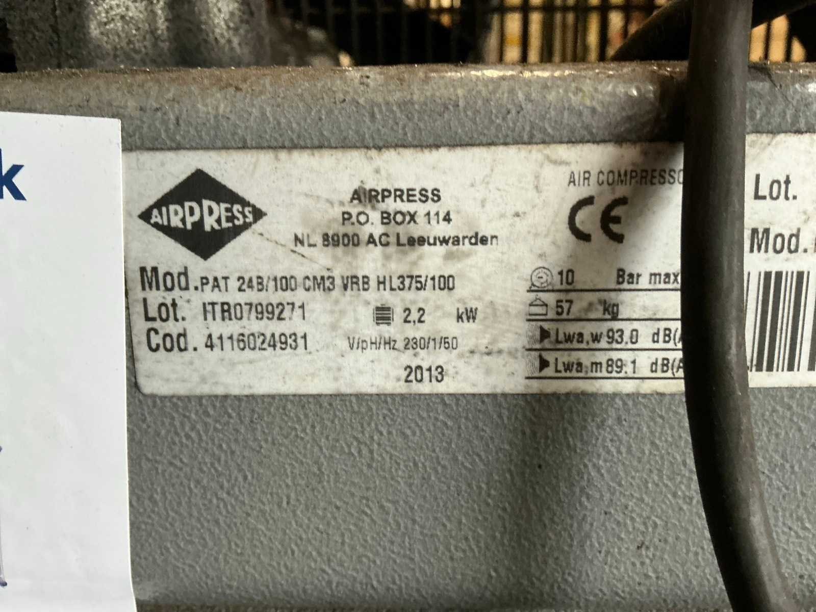 Inclusief 1x luchtslang Merk: Airpress Type: Euro Bouwjaar: 2013 Mobiel: true Capaciteit.: 10bar Luchtstroom: 375l/min Vermogen: 2.2kW Buffertank inhoud: 100l Aansluiting: 230V Totale afmeting L: 1000mm Totale afmeting Breedte: 500mm Totale afmeting Hoogte: 950mm