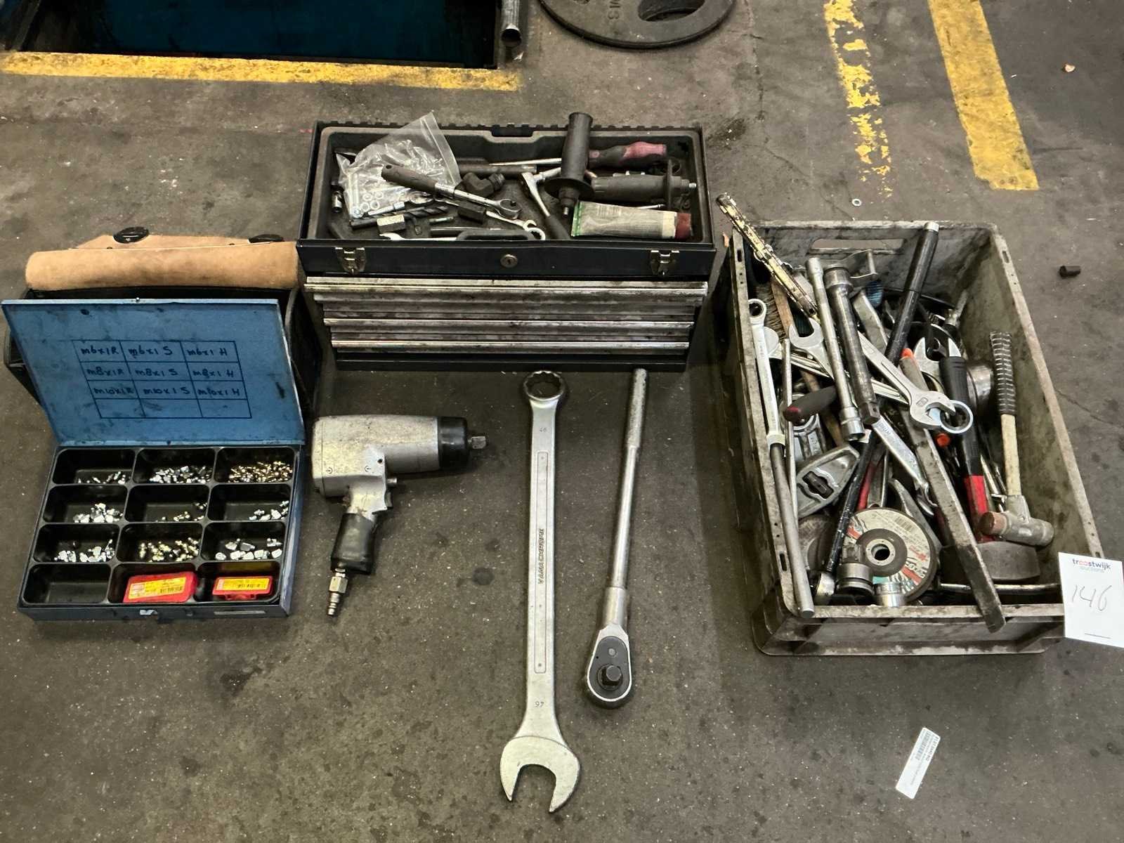 Partij handgereedschap en 1 pneumatische slagmoersleutel