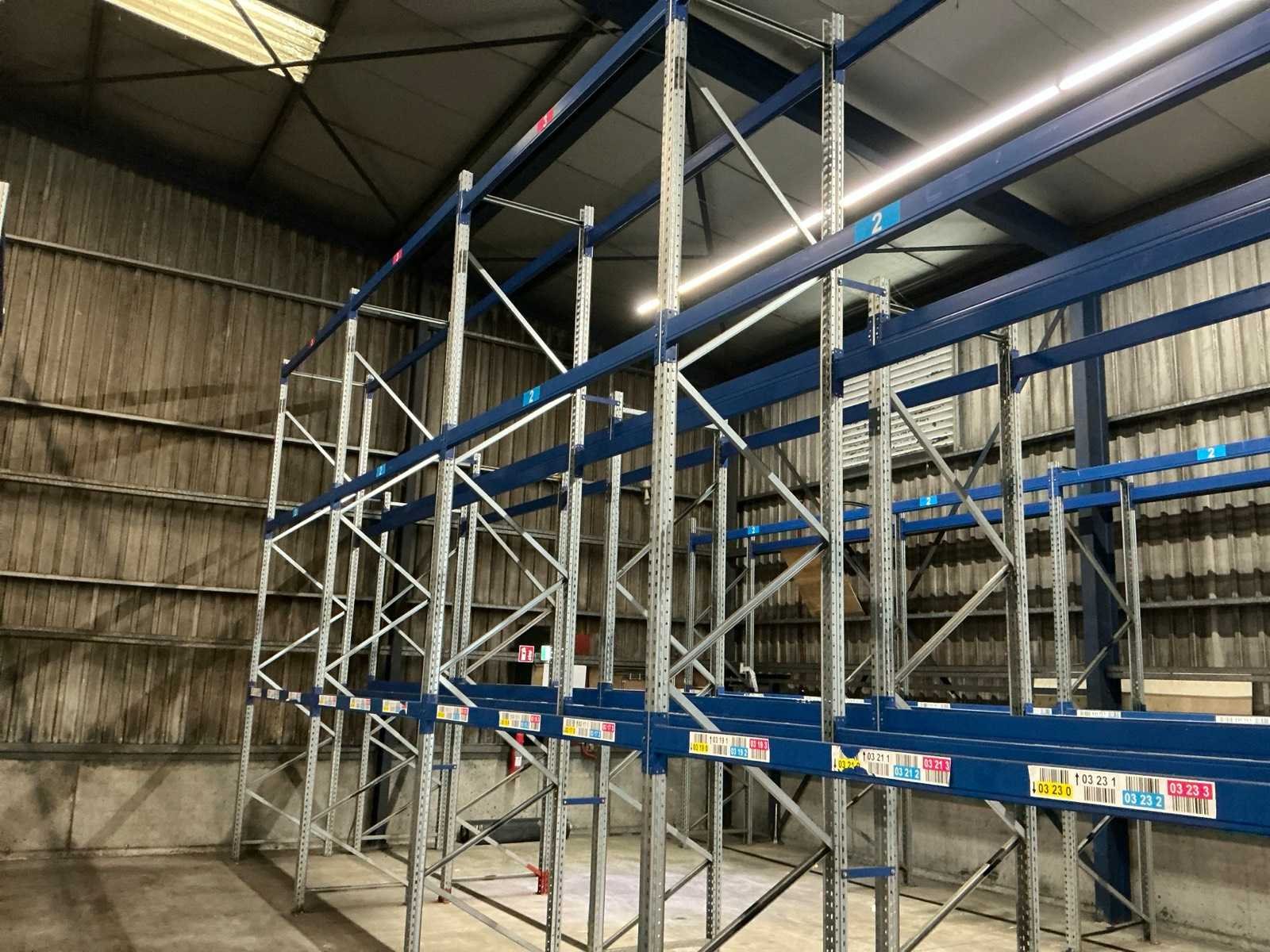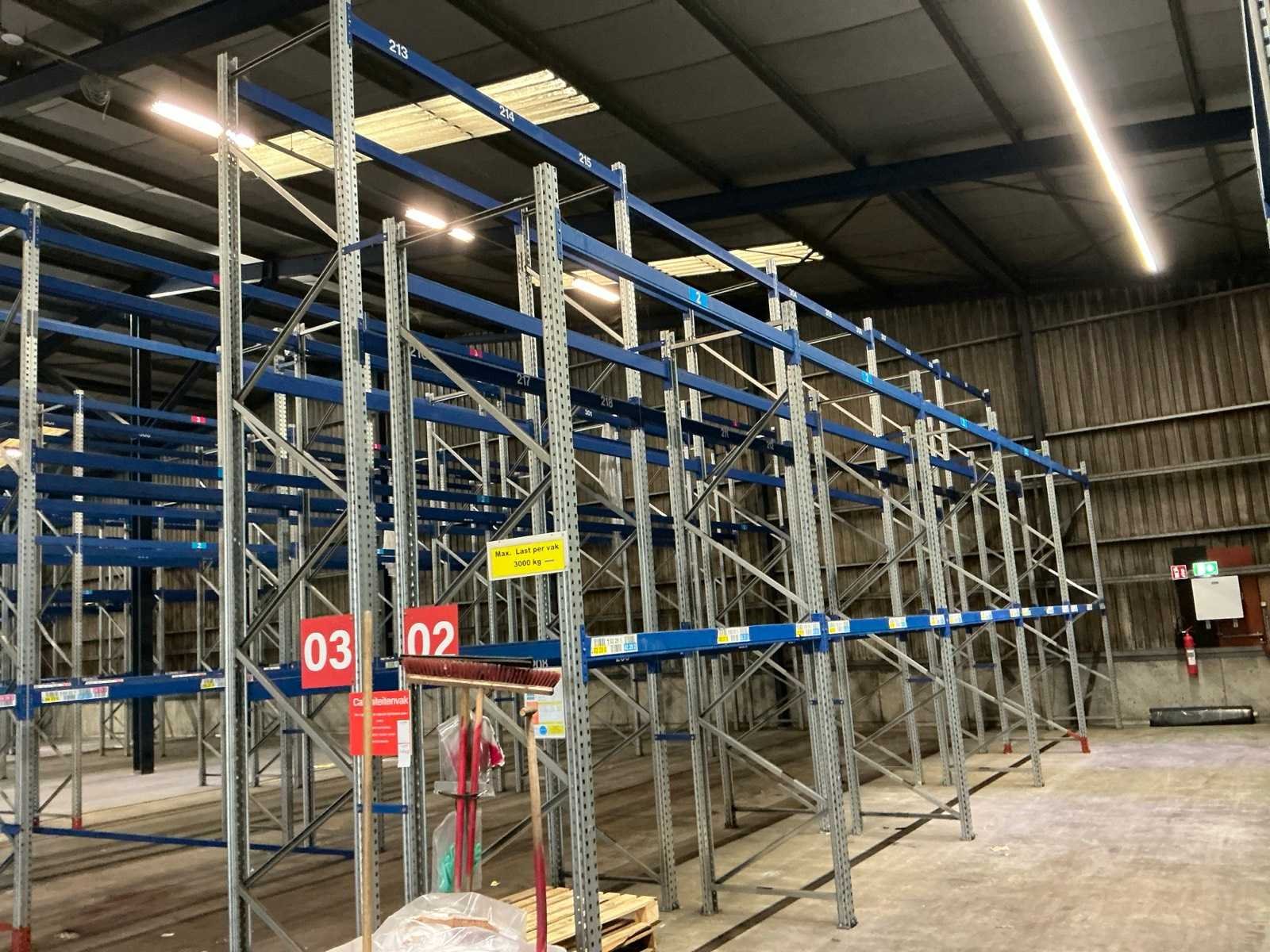 Bestaande uit 10 secties (410x105cm), 5 secties (550x105cm), 2x aanrij beveiliging, 2x bureau met stoel, kachel en divers Merk: SSI Shafer Bouwjaar: 2014 Aantal secties: 15 Sectie afm. b: 2690mm Sectie diepte: 1050mm Aantal staanders: 18 Aantal liggers: 70 Max. sectiebelasting: 3000kg Demontabel: true Totale afmeting Hoogte: 550cm