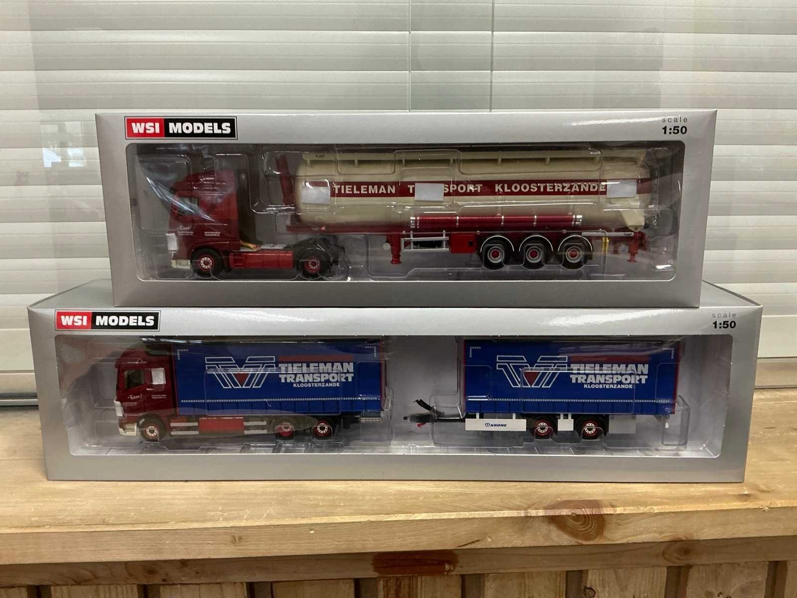 In verpakking, 1x DAF, 1x Volvo Merk: WSI model Type: 1:50 Tieleman Transport