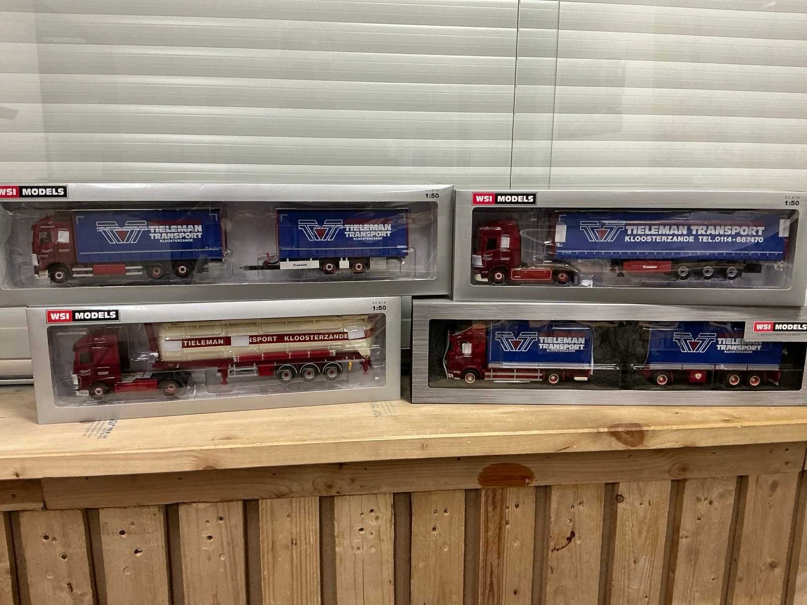 In verpakking; Scania, Volvo en DAF Merk: WSI model Type: 1:50 Tieleman Transport