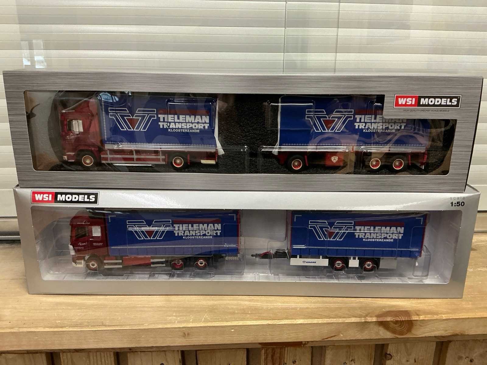 In verpakking, 1x Scania 1x Volvo Merk: WSI model Type: 1:50 Tieleman Transport