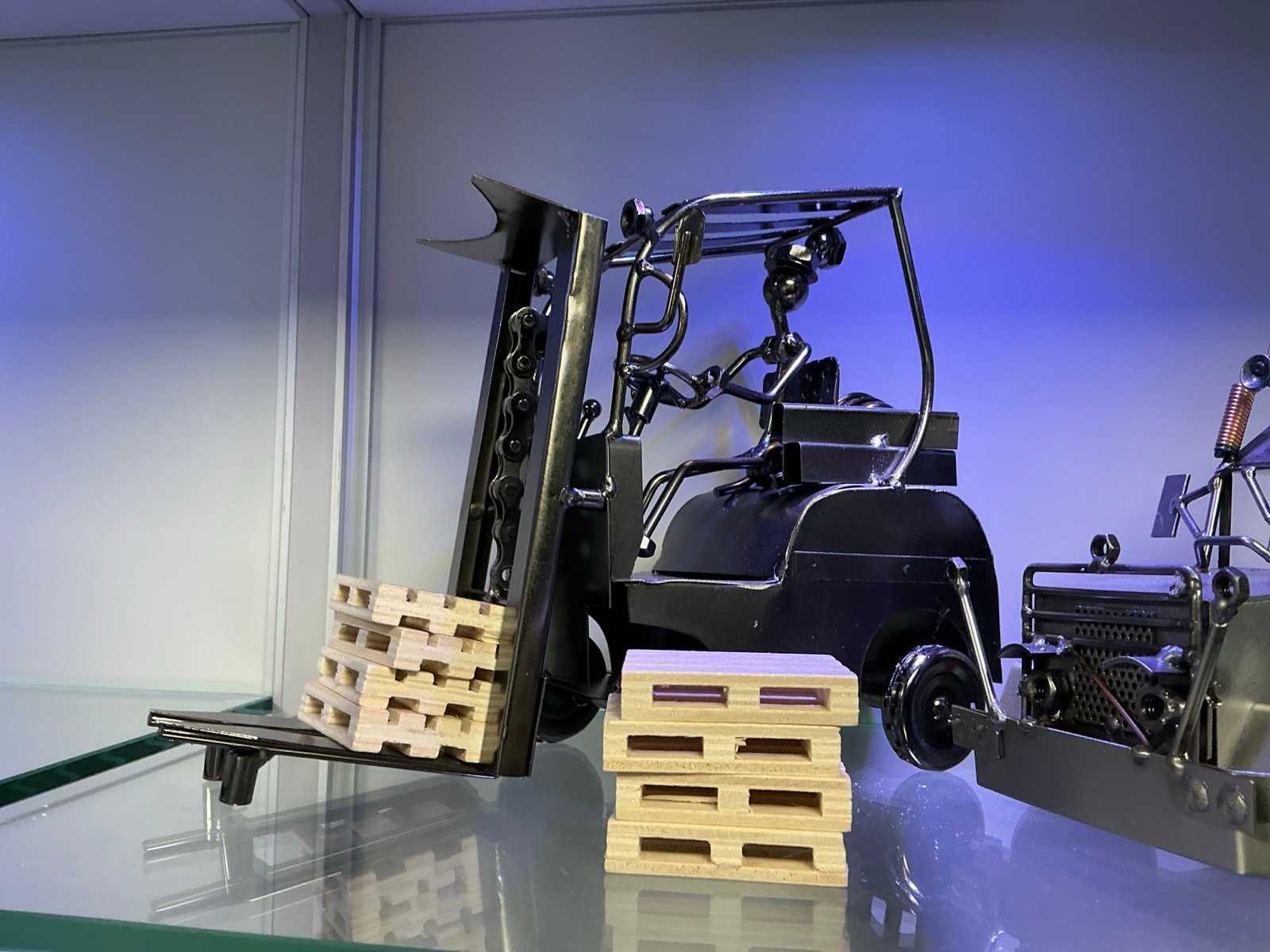 Model van RVS, met houten pallets Merk: RVS Type: Vrachtwagen en heftruck model
