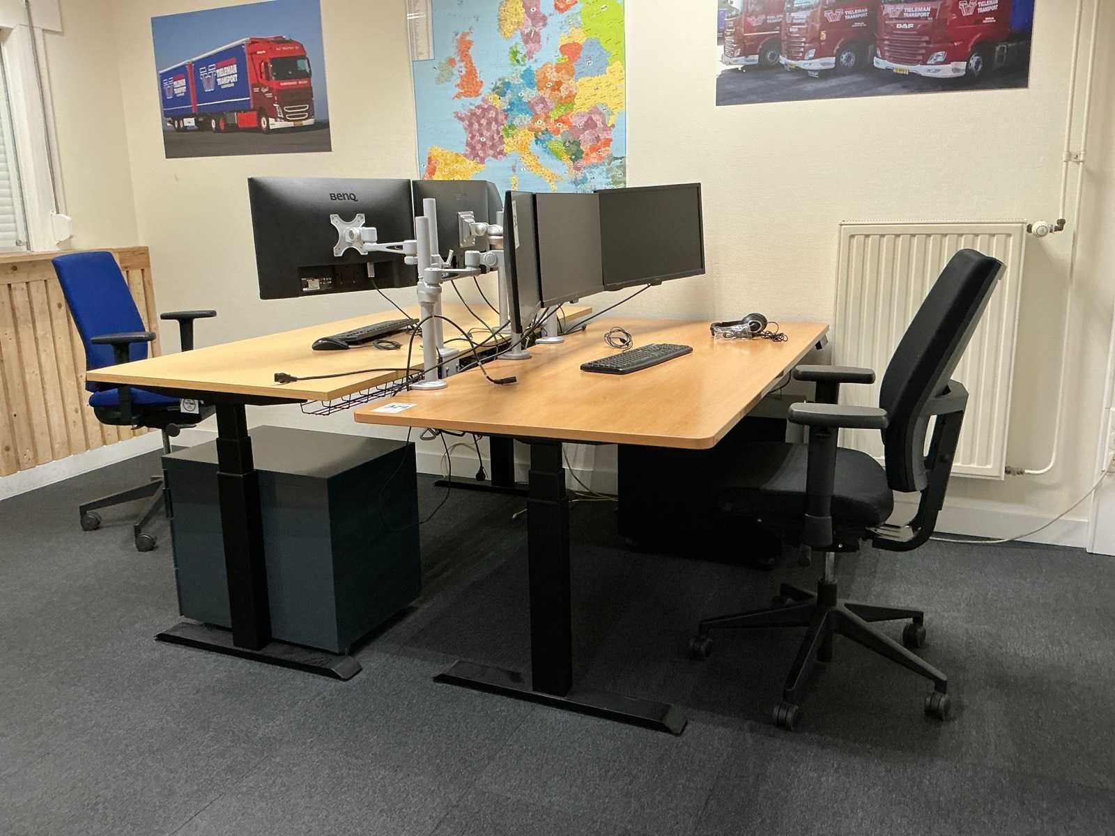 Waarvan 1x bureau 90 cm breedte; 2x bureaustoel, 2x ladeblok, 1x jaloeziedeurkast 120x42x75 cm; zonder monitoren Elektrisch verstelbaar: true Lengte: 180cm Breedte: 80cm