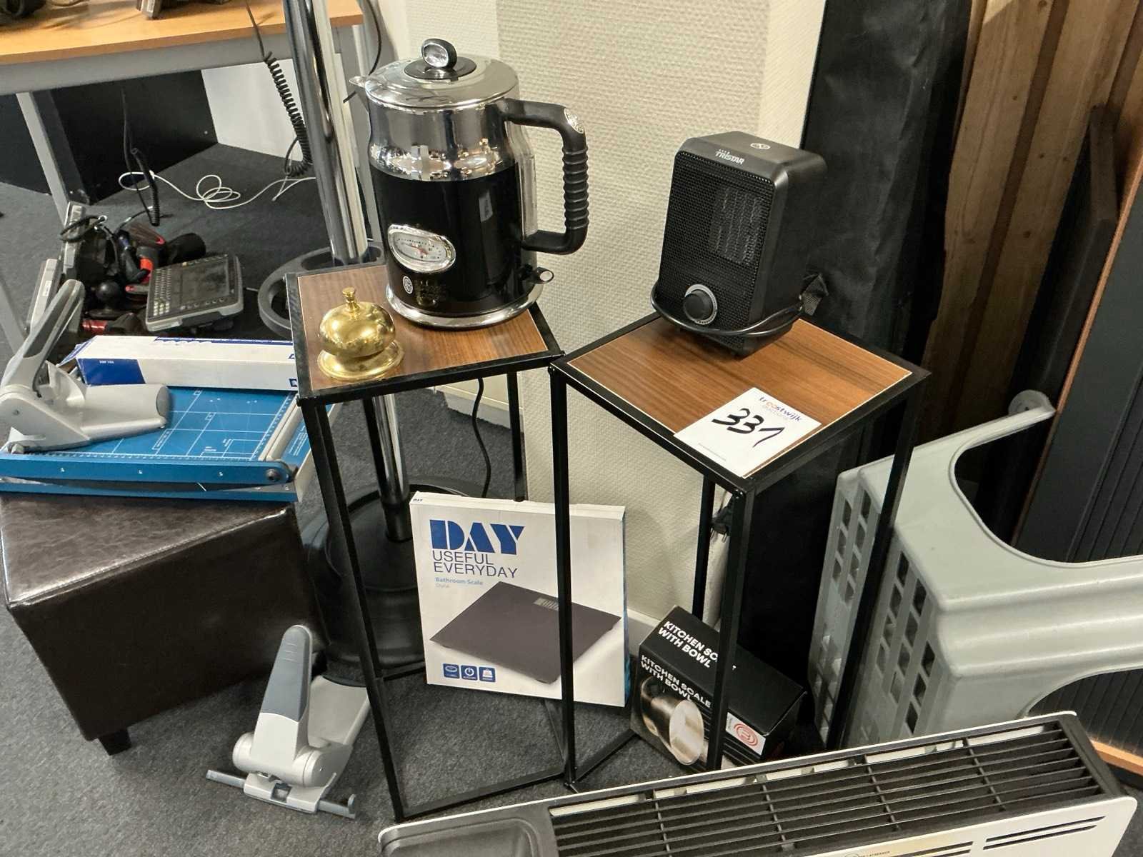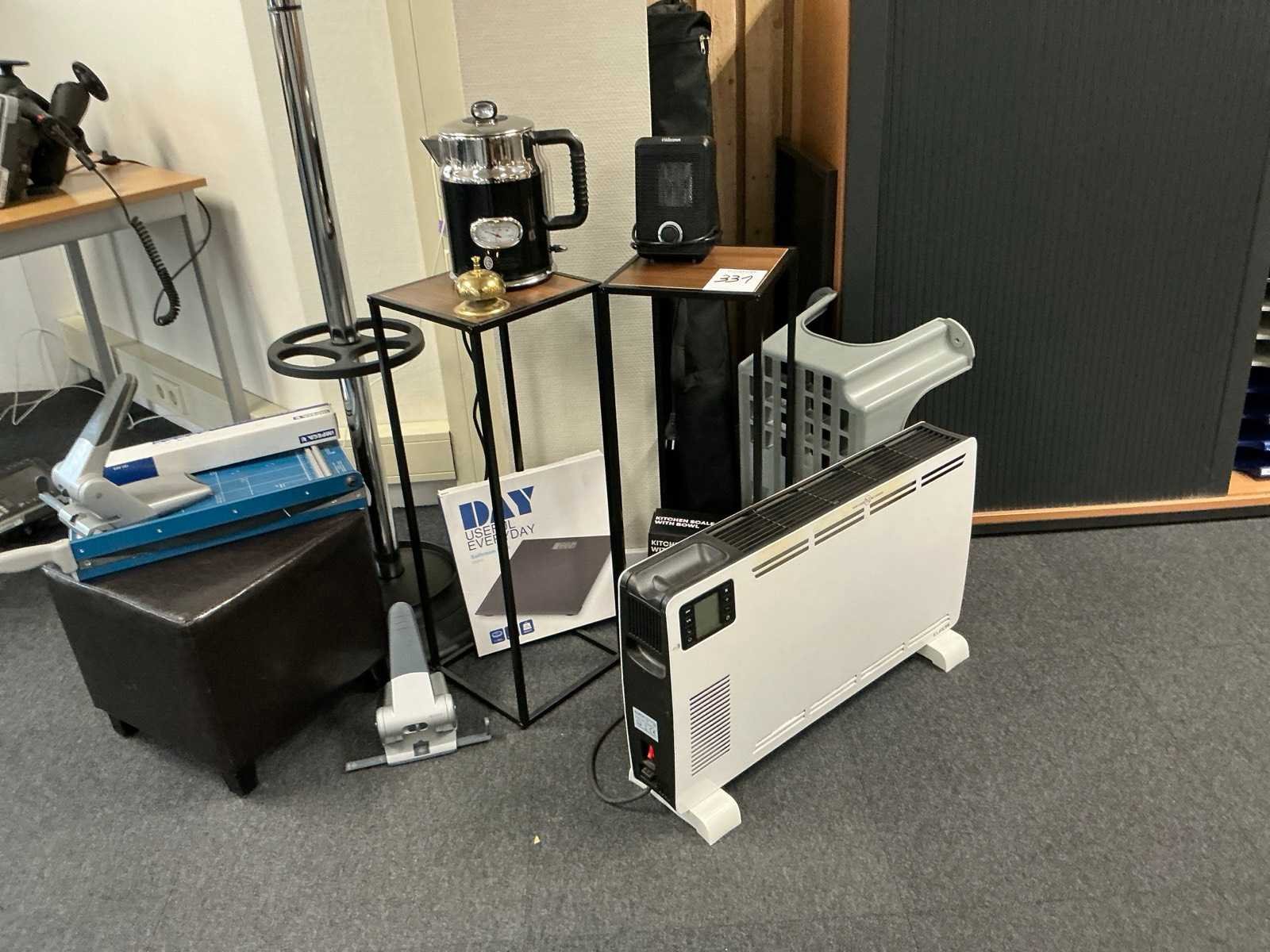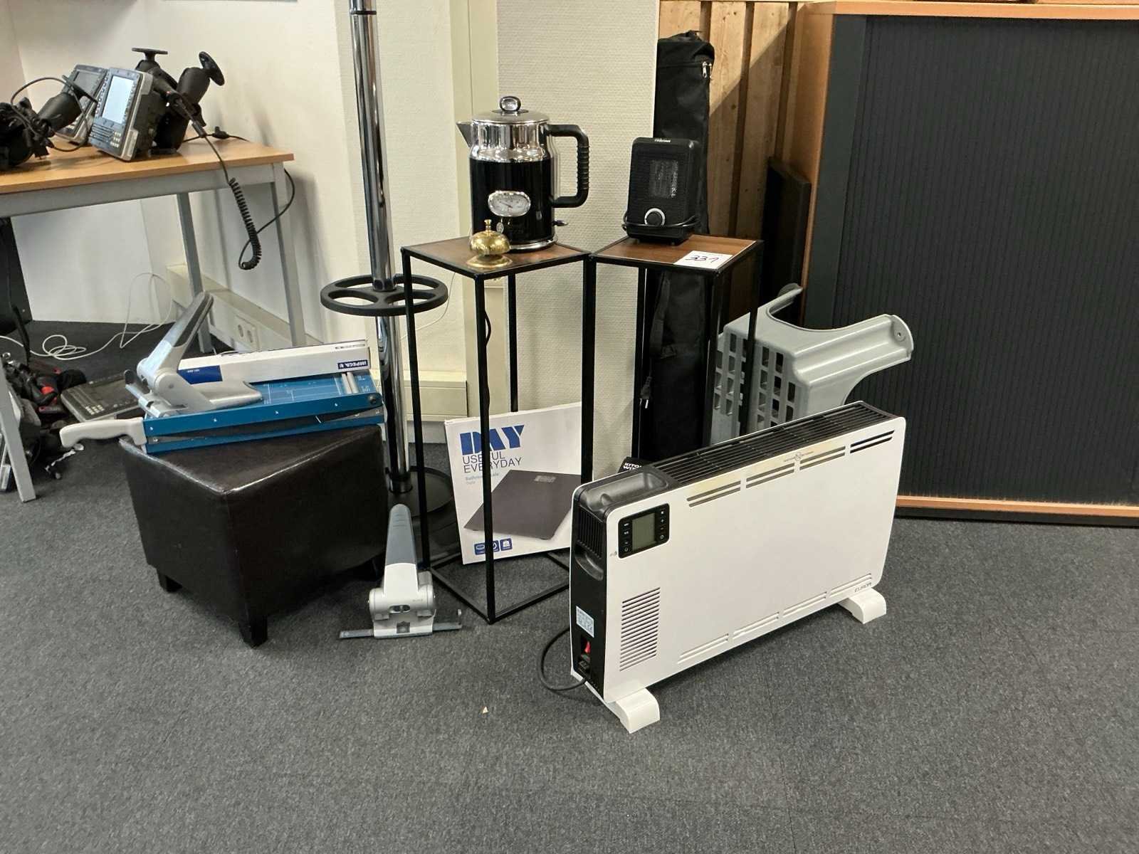 Waaronder 1x elektrische verwarming, koffiepot, elektrische heater, papiersnijder, 2x perforator, kapstok