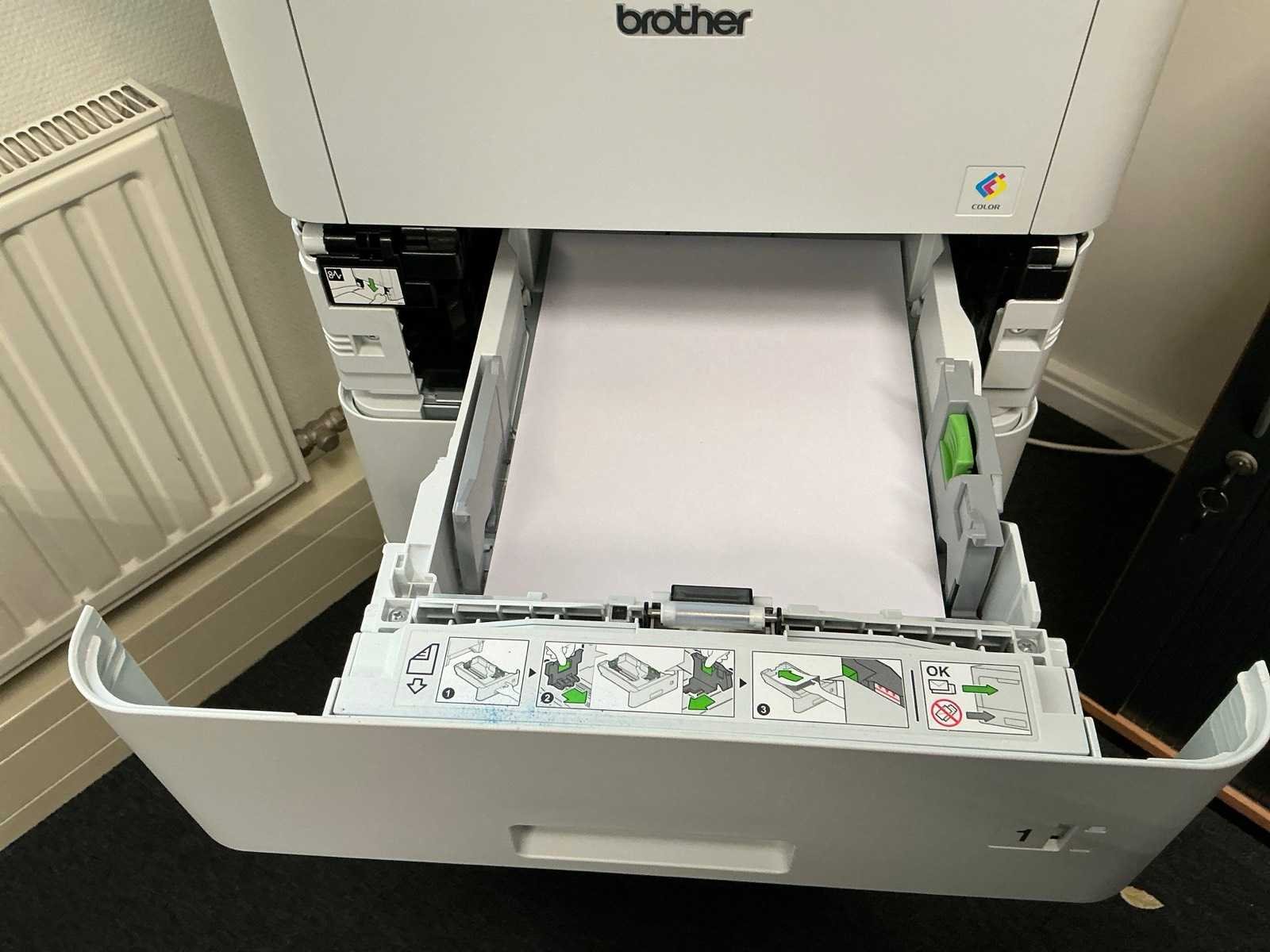 4-in-1 kleurenlaserprinter, kopiëren, scannen en faxen, 3 papierladen Merk: Brother Model: MFC-EX670 Lengte: 54cm Breedte: 50cm Hoogte: 125cm