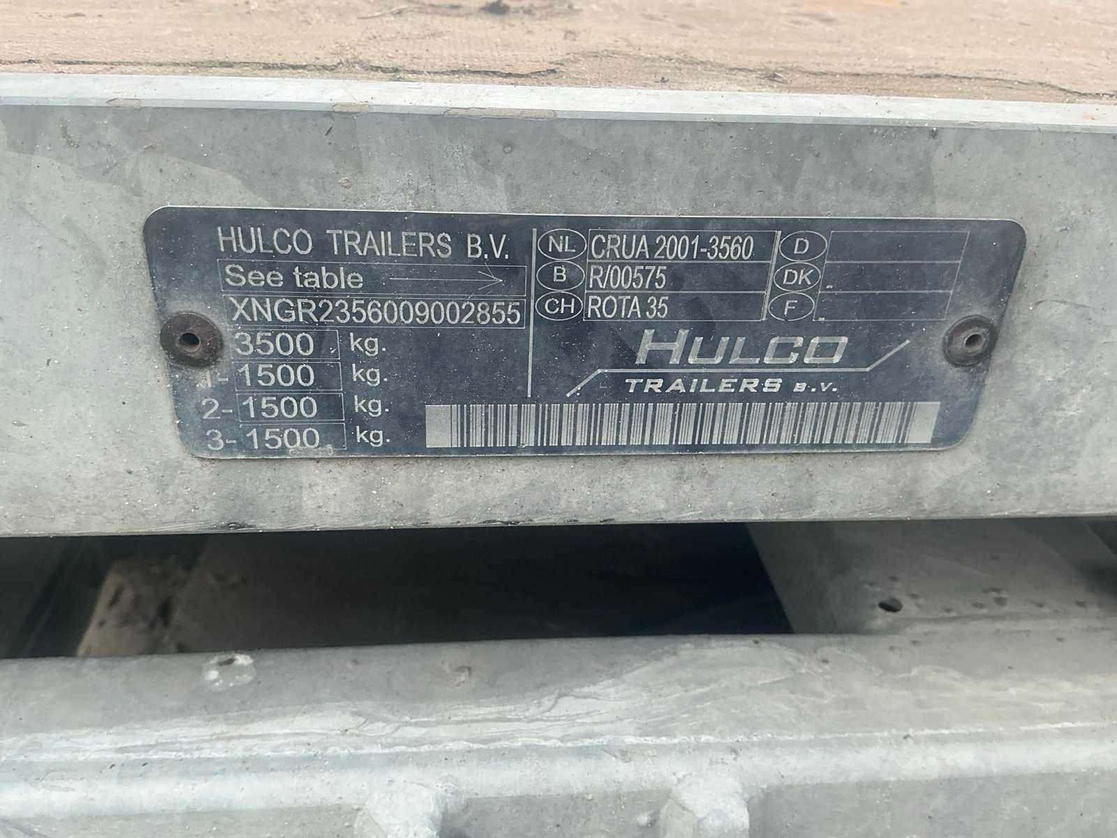 Bakafmeting; 6,15M x 2,08. Met reservewiel Merk: Hulco Aantal assen: 4 Ledig gewicht: 900kg Laadvermogen: 2600kg Datum eerste toelating: 2009-07-20 Datum eerste toelating (NL): 2009-07-20 Kenteken: 69-WF-BS Kentekenpapieren compleet?: true
